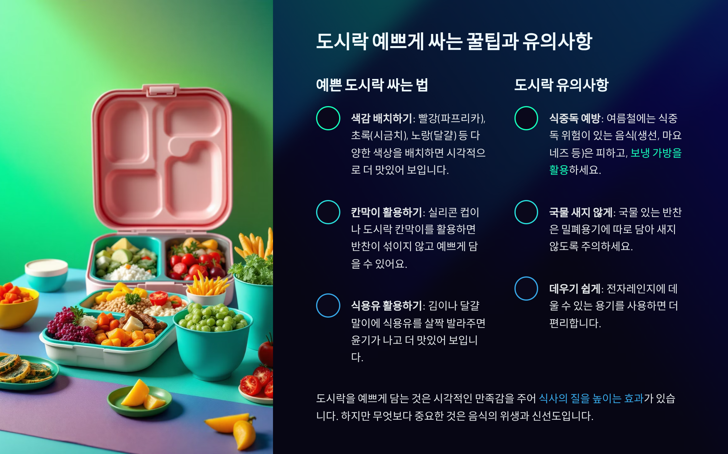 - 도시락 예쁘게 싸는 꿀팁과 유의사항