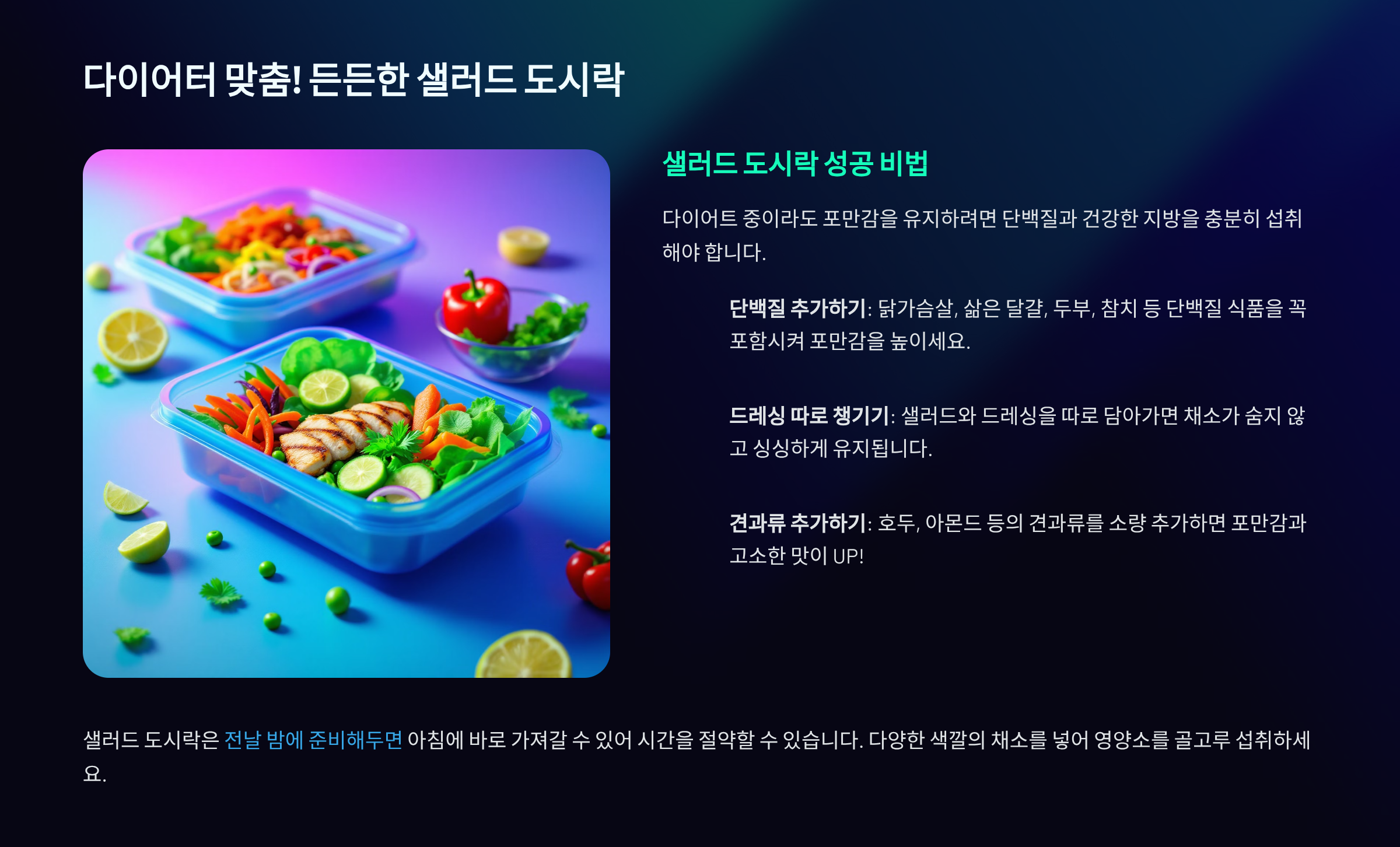 - 다이어터 맞춤! 든든한 샐러드 도시락