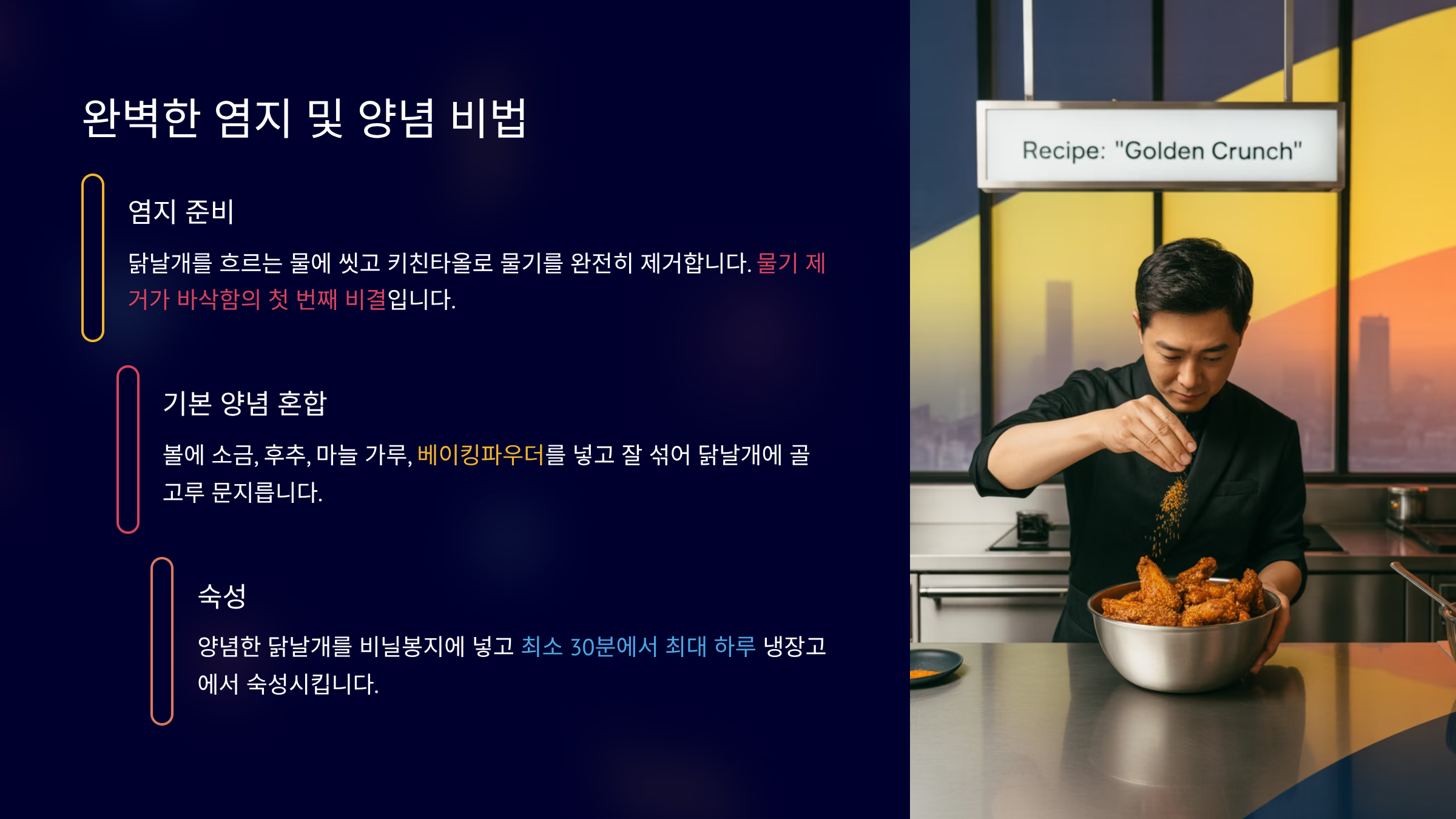 - 맛과 풍미를 더하는 완벽한 염지 및 양념 비법