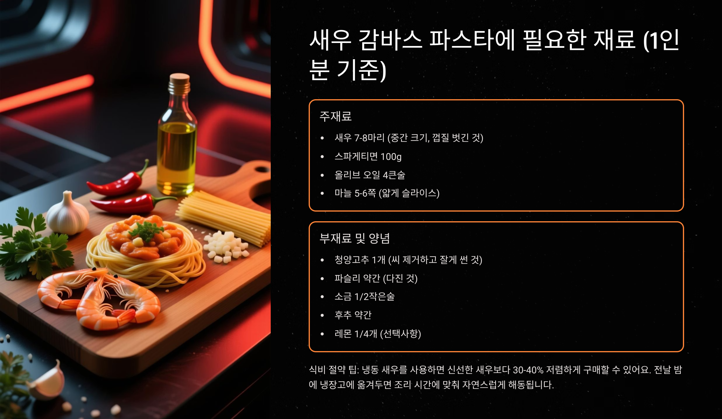 맛있는 새우 감바스 파스타를 만들고 즐거운 식사 시간을 보내세요! 🍝