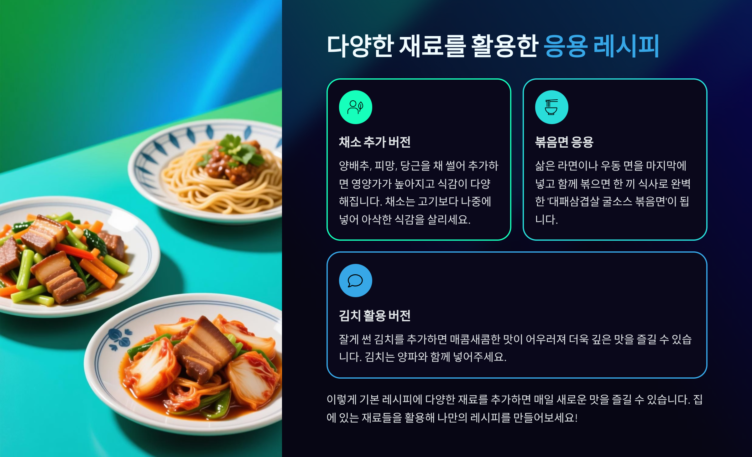 바쁜 하루 끝, 빠르고 맛있게 한 끼를 해결하고 싶을 때 생각나는 메뉴가 바로 볶음 요리입니다. 특히 얇아서 금방 익는 대패삼겹살은 시간을 절약해주면서도 풍성한 맛을 선사하는 최고의 식재료죠. 여기에 알싸한 파채와 만능 소스인 굴소스가 더해지면, 별다른 재료 없이도 깊은 감칠맛을 내는 근사한 메인 요리가 완성됩니다. 남녀노소 누구나 좋아할 만한 대패삼겹살 파채 굴소스 볶음은 밥반찬은 물론, 술안주로도 손색이 없습니다. 지금부터 누구나 실패 없이 만들 수 있는 황금 레시피와 요리 팁을 자세히 알려드릴게요!