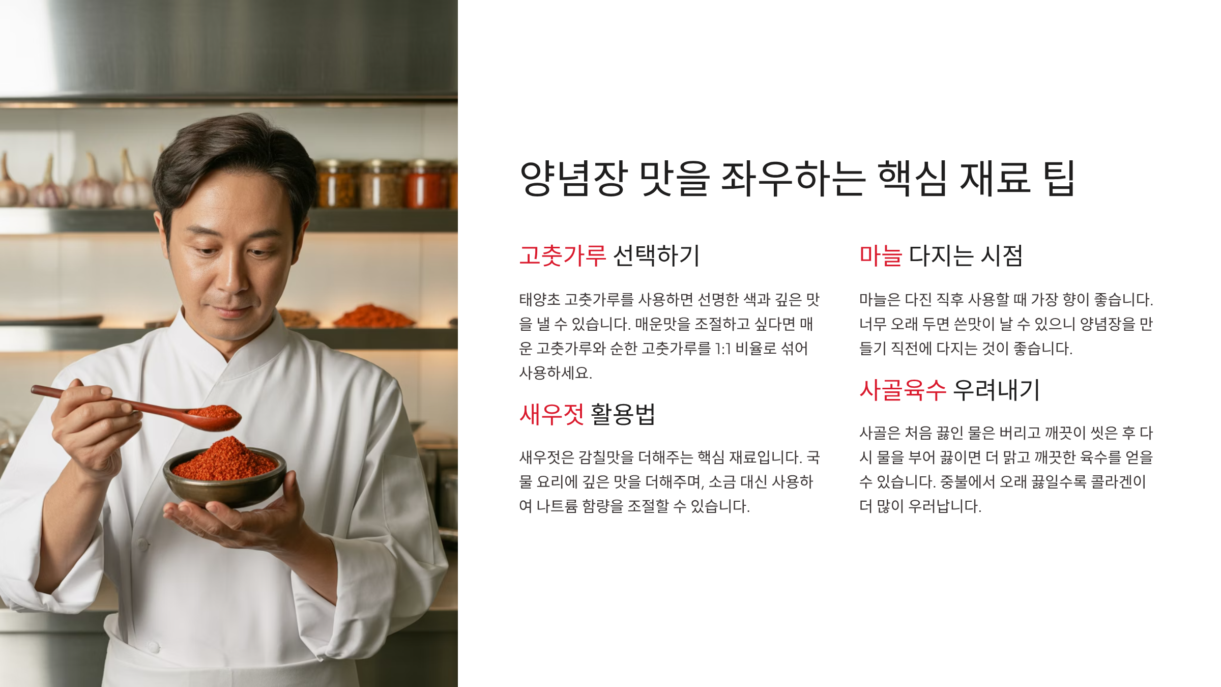 양념장 맛을 좌우하는 핵심 재료 팁 ✅