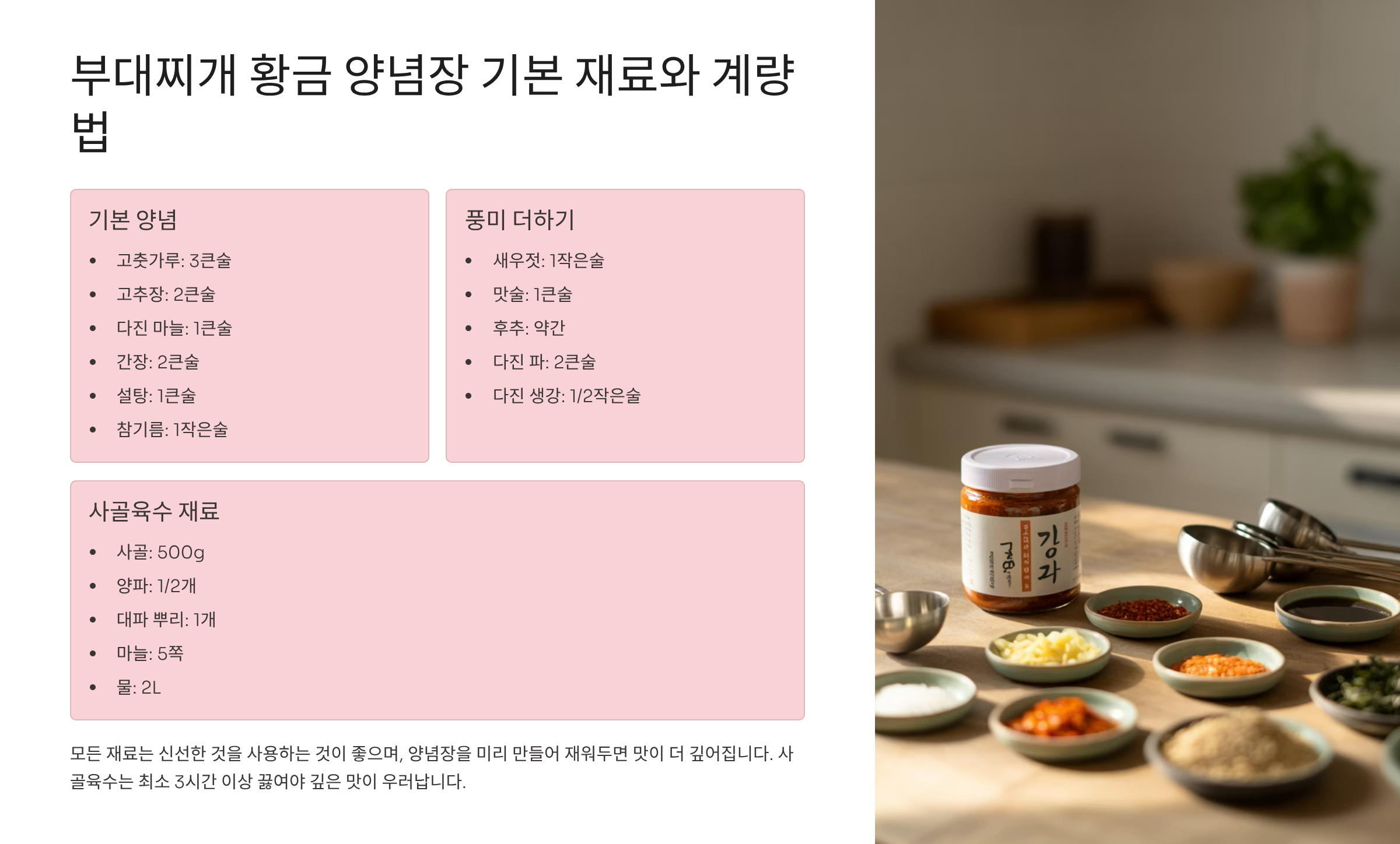 부대찌개 황금 양념장 기본 재료와 계량법 📝