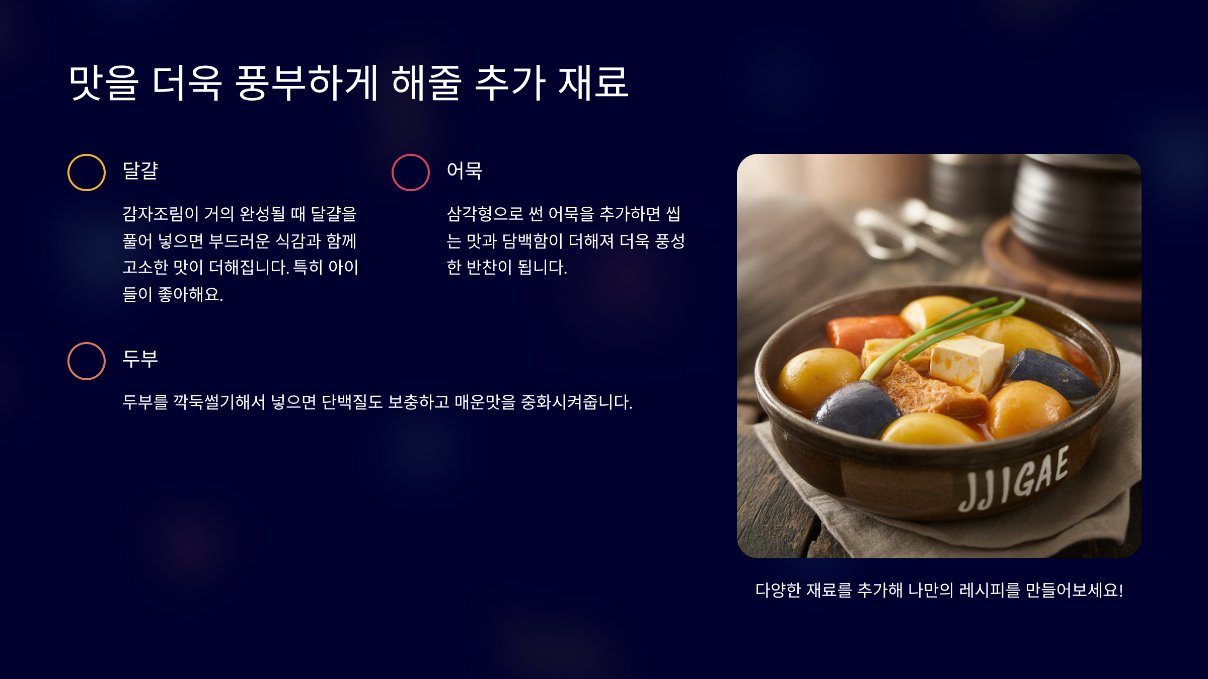 매콤 감자조림 맛을 더욱 풍부하게 해줄 추가 재료 🥕