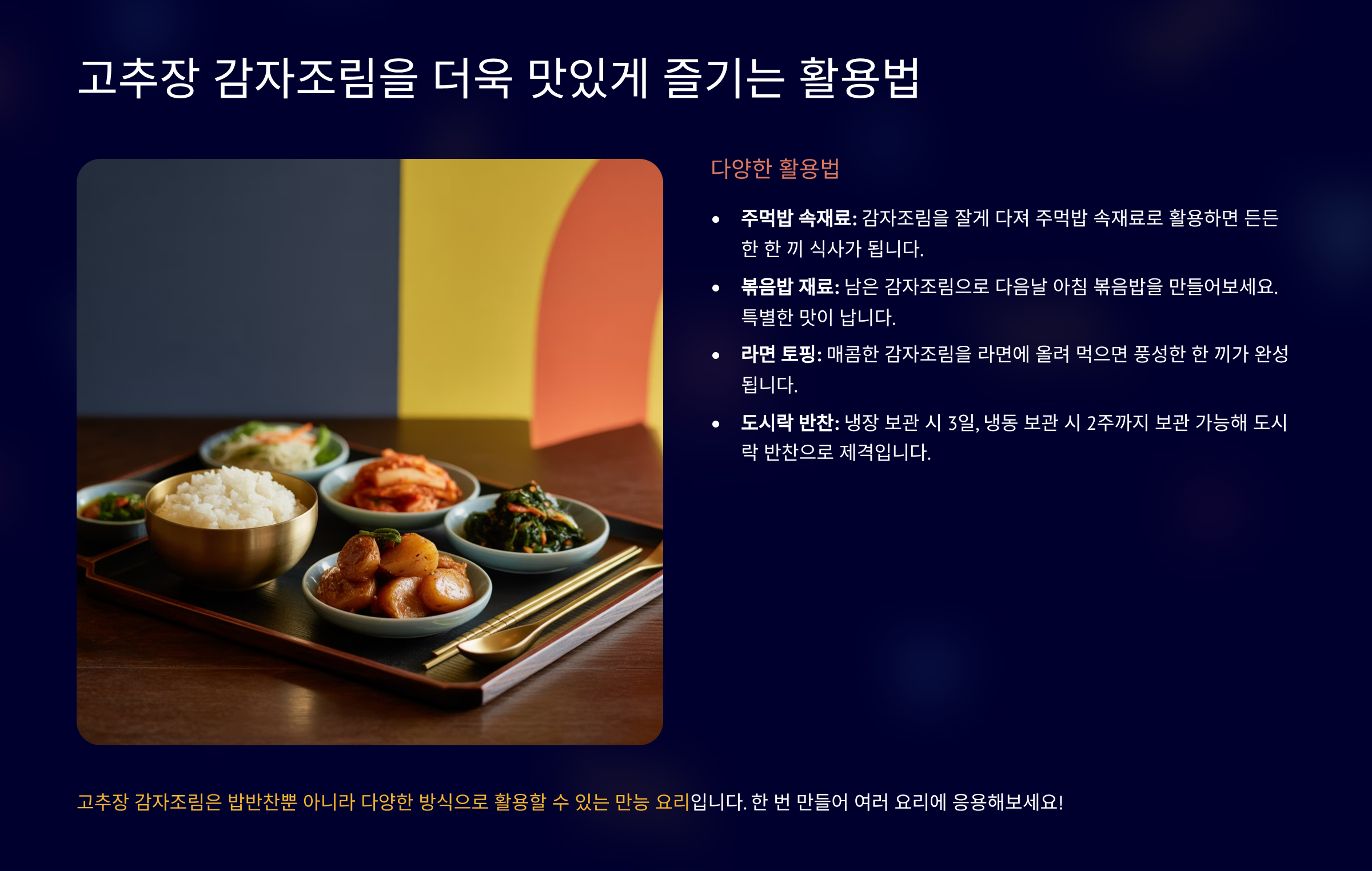 고추장 감자조림을 더욱 맛있게 즐기는 활용법 🍽️