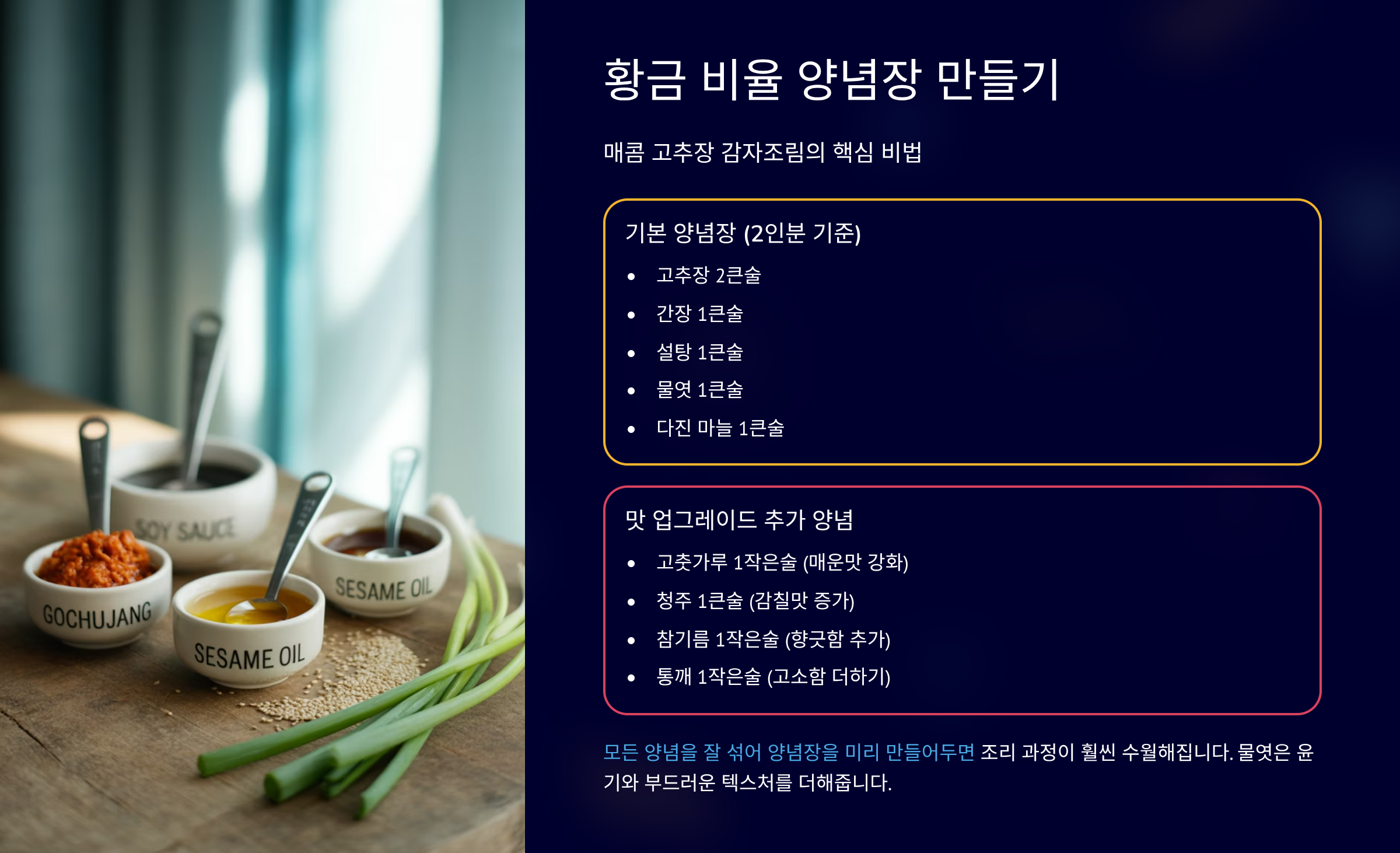 황금 비율 양념장 만들기: 매콤 고추장 감자조림 핵심 비법 ✨