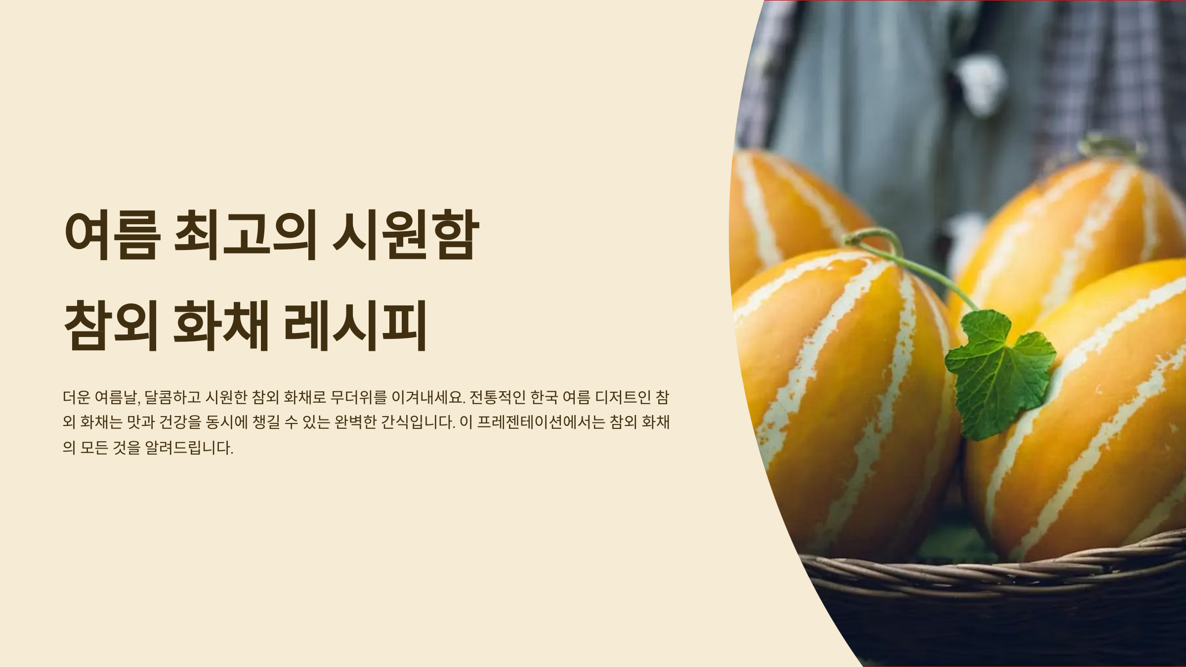 참외는 여름철 대표 과일 중 하나로, 달콤하고 시원한 맛 덕분에 더운 날씨에 인기가 많아요. 특히 참외를 활용한 화채는 상큼한 맛과 시원함을 동시에 즐길 수 있어서 많은 사람들이 사랑하는 여름 디저트랍니다.