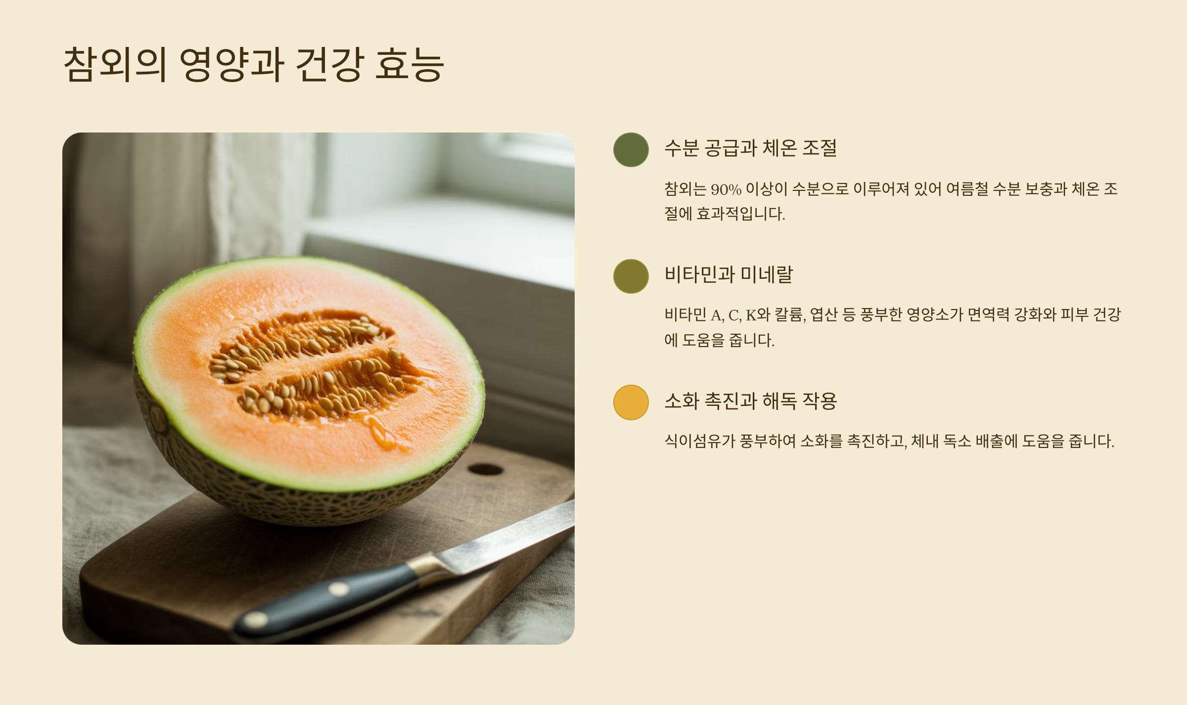 참외는 단순한 여름 과일이 아니에요. 우리 몸에 좋은 다양한 효능을 가진 건강 지킴이랍니다.
