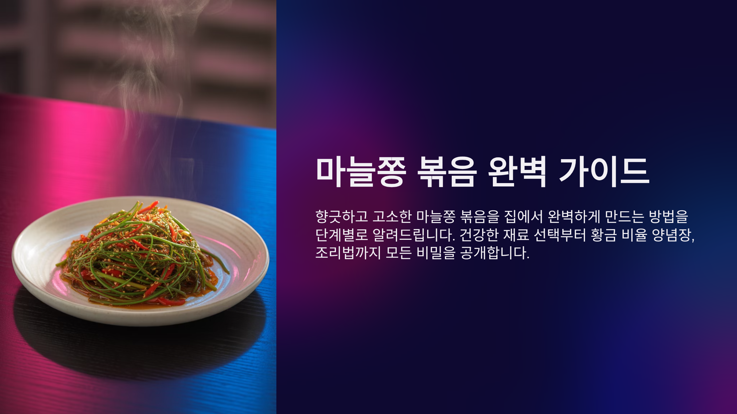 향긋한 마늘 향과 아삭한 식감이 매력적인 마늘쫑 볶음은 우리 식탁에 빠질 수 없는 국민 밑반찬입니다. 하지만 때로는 질긴 식감 때문에, 또는 밋밋한 맛 때문에 만족스럽지 못한 결과가 나오기도 하죠. 이 글은 단순히 레시피를 넘어, 신선한 마늘쫑을 고르는 법부터 손질 꿀팁, 실패 없는 황금 비율 양념장, 그리고 더 맛있게 즐기는 다양한 응용법까지 마늘쫑 볶음의 모든 것을 담았습니다. 이 가이드를 따라 차근차근 만들어보시면, 요리 초보자도 전문가처럼 훌륭한 마늘쫑 볶음을 완성할 수 있을 것입니다. 📝 지금부터 향긋하고 고소한 마늘쫑 볶음의 세계로 함께 떠나볼까요?