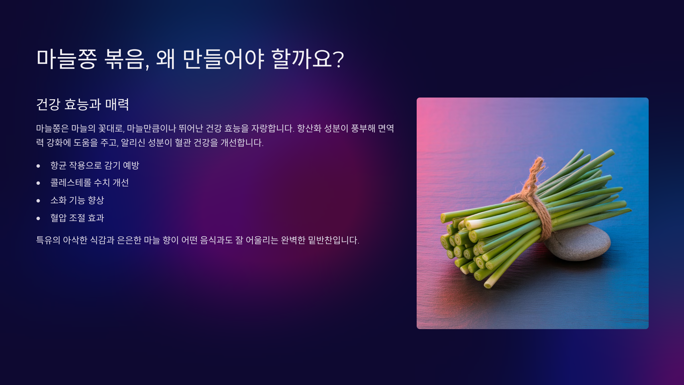 마늘쫑 볶음, 왜 만들어야 할까요? 건강 효능과 매력 ✨