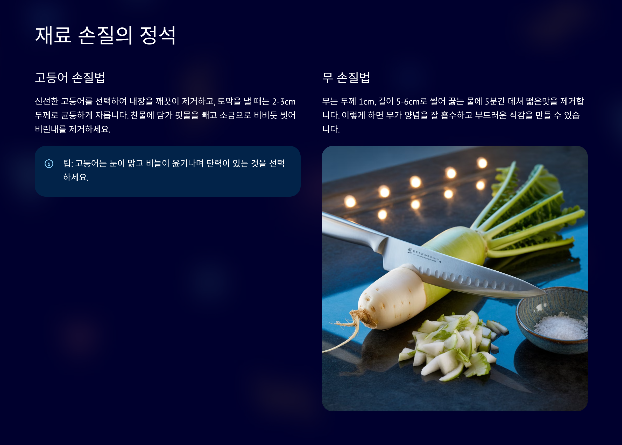 재료 손질의 정석: 무와 고등어 준비 🔪