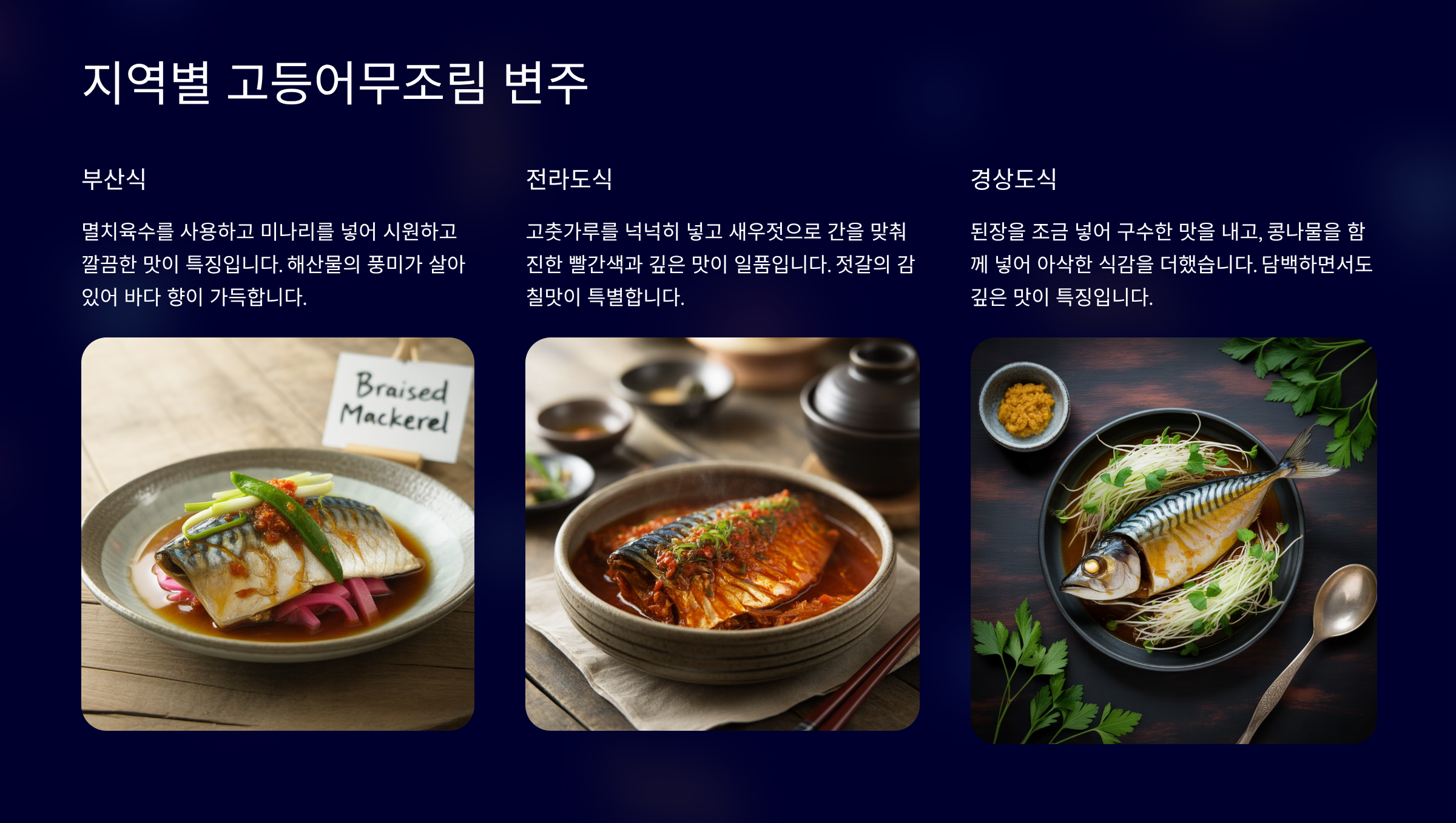 지역별 & 이색 고등어무조림 변주 🗺️
