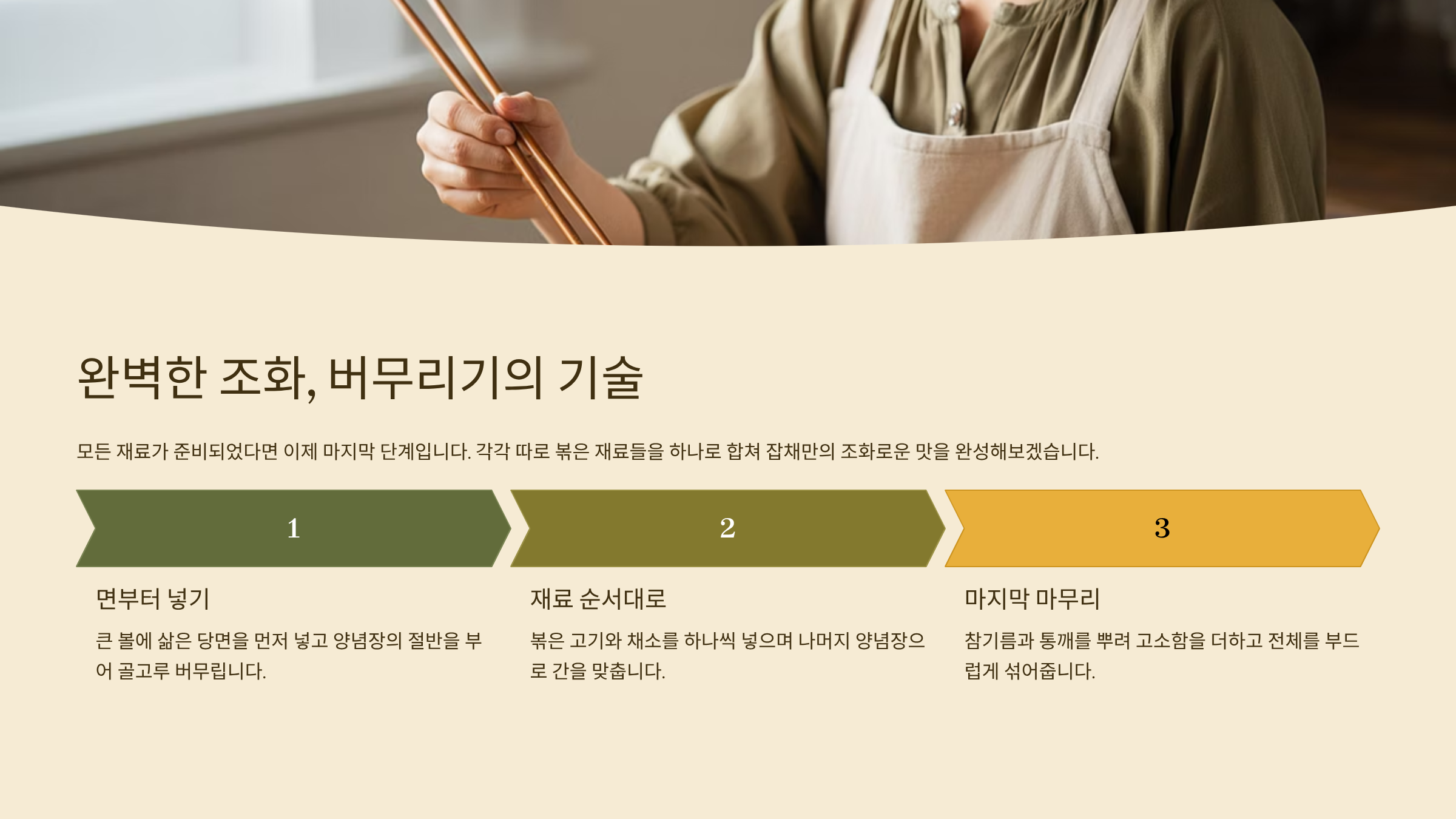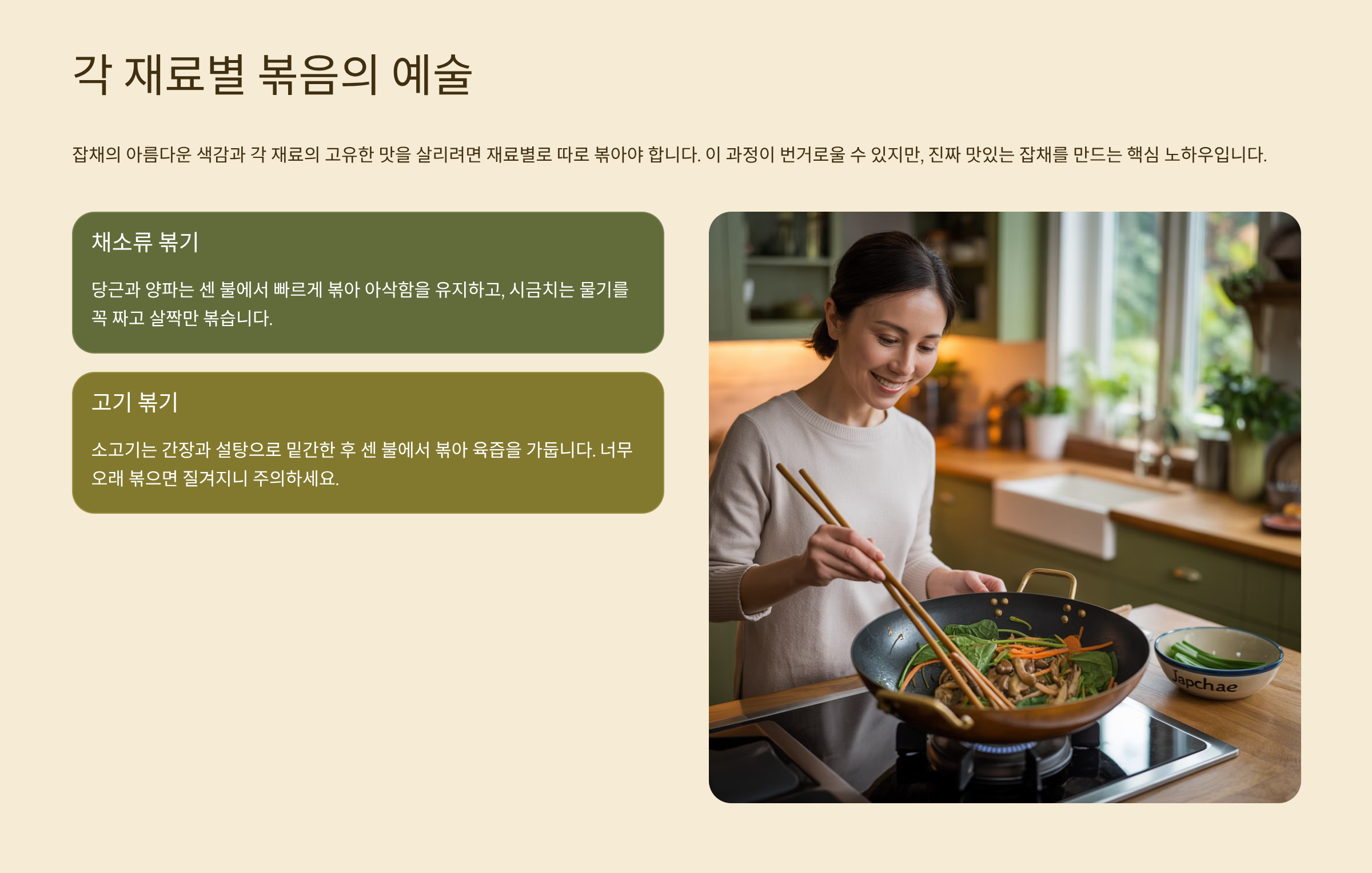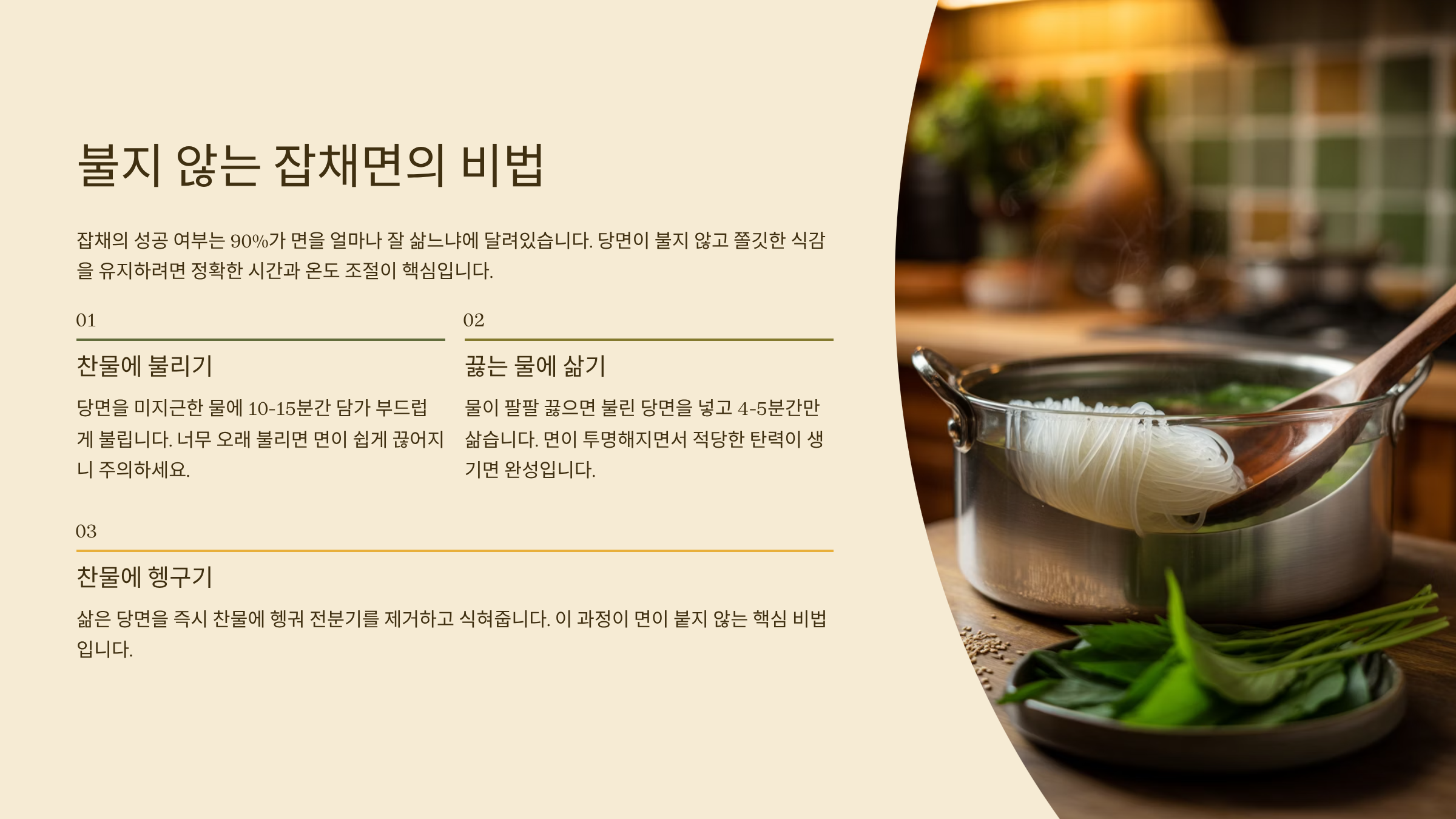 불지 않는 잡채 면, 성공의 90%를 좌우하는 비법 📝