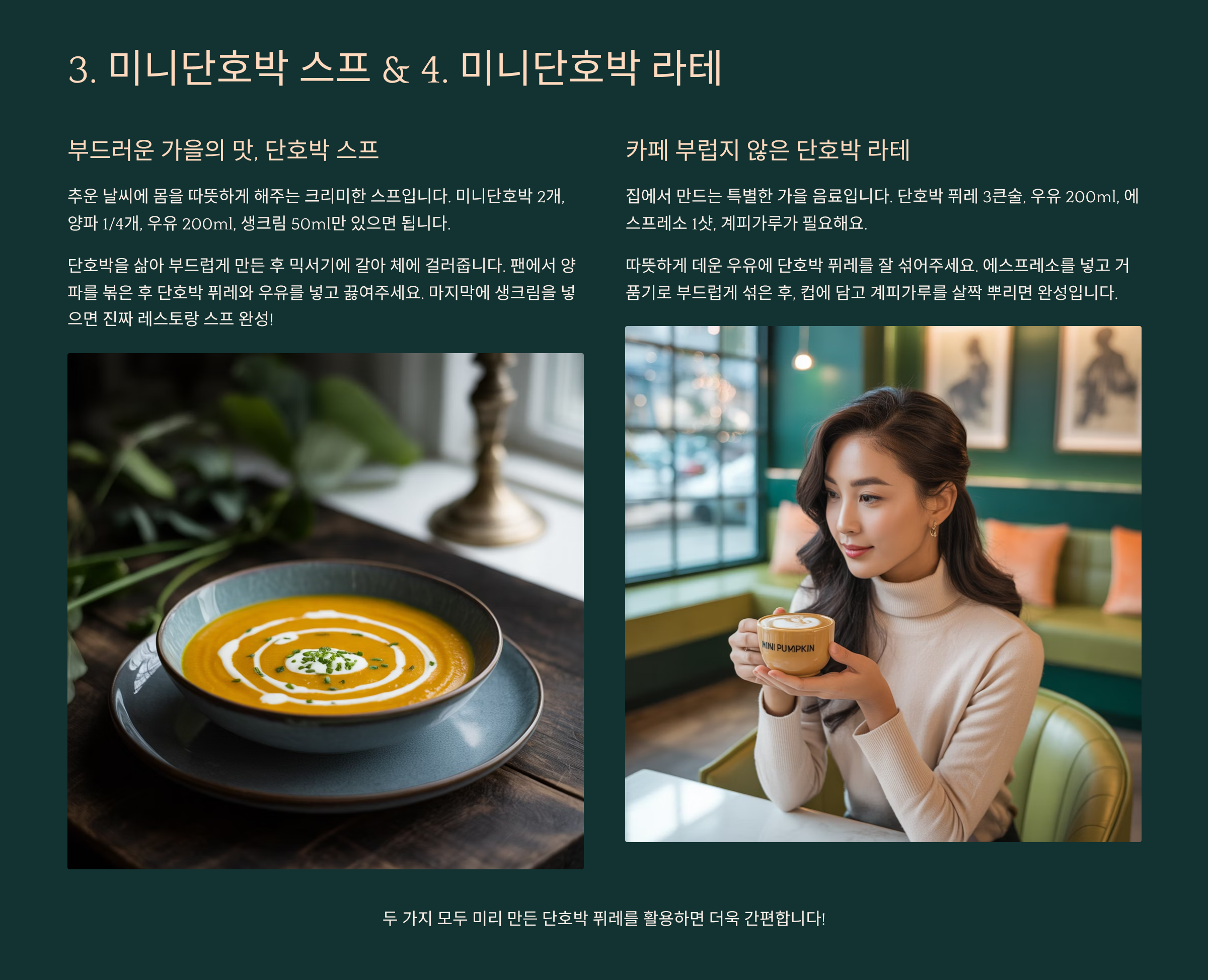 스프 레시피 보러가기!4. 미니단호박 라테: 카페 부럽지 않은 가을 음료 ☕