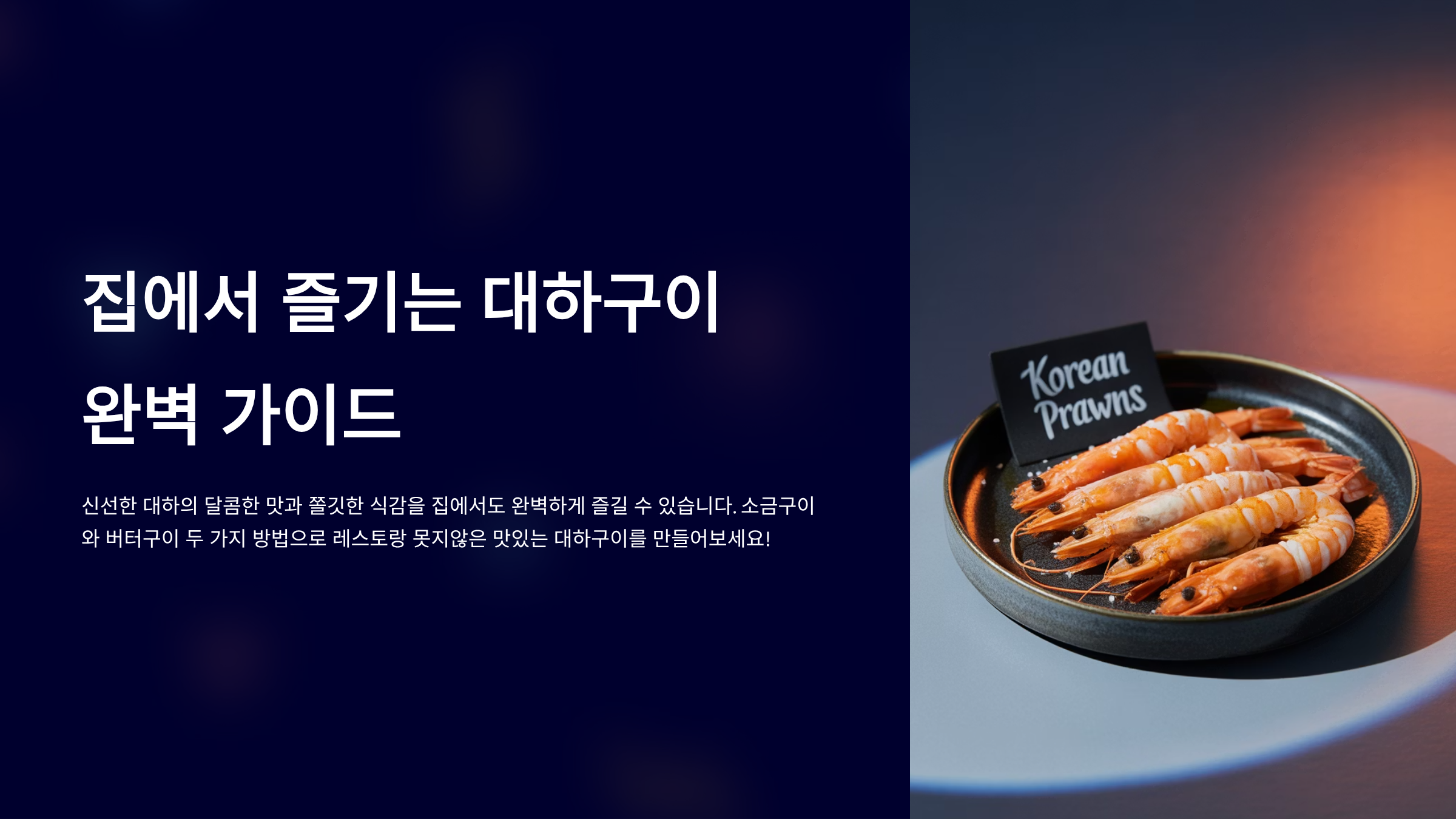 선선한 바람이 불어오는 가을이면, 짭조름한 바다 냄새와 함께 통통하게 살이 오른 대하의 계절이 돌아옵니다. 대하구이는 남녀노소 누구나 좋아하는 가을철 대표 별미 중 하나인데요. 밖에서 사 먹는 것도 좋지만, 집에서 직접 구워 먹으면 훨씬 푸짐하고 신선한 맛을 즐길 수 있습니다. 하지만 막상 하려면 어떻게 해야 할지 막막할 때가 많죠. 대하 손질부터 소금구이, 버터구이, 그리고 곁들일 소스까지! 집에서 대하구이 맛있게 하는법의 모든 것을 이 글에 담았습니다. 전문가의 꿀팁과 자세한 레시피로, 실패 없이 완벽한 대하구이를 완성해 보세요.