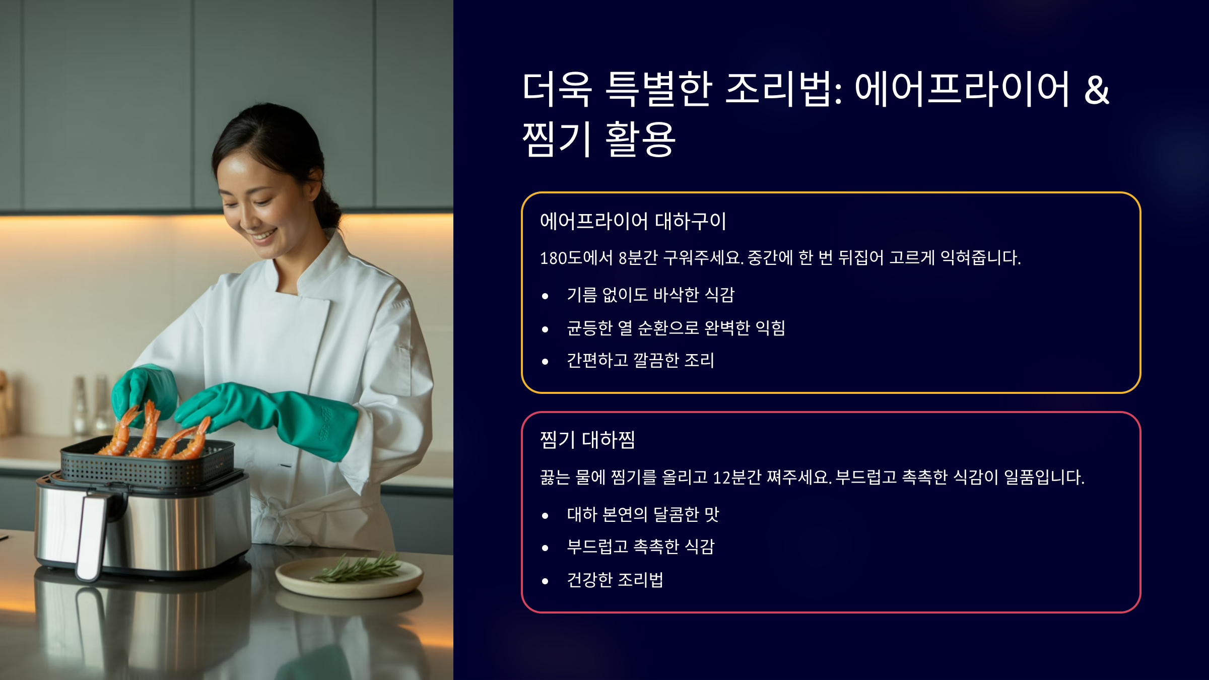 각 조리법의 특징을 이해하고 취향에 맞게 선택하세요.