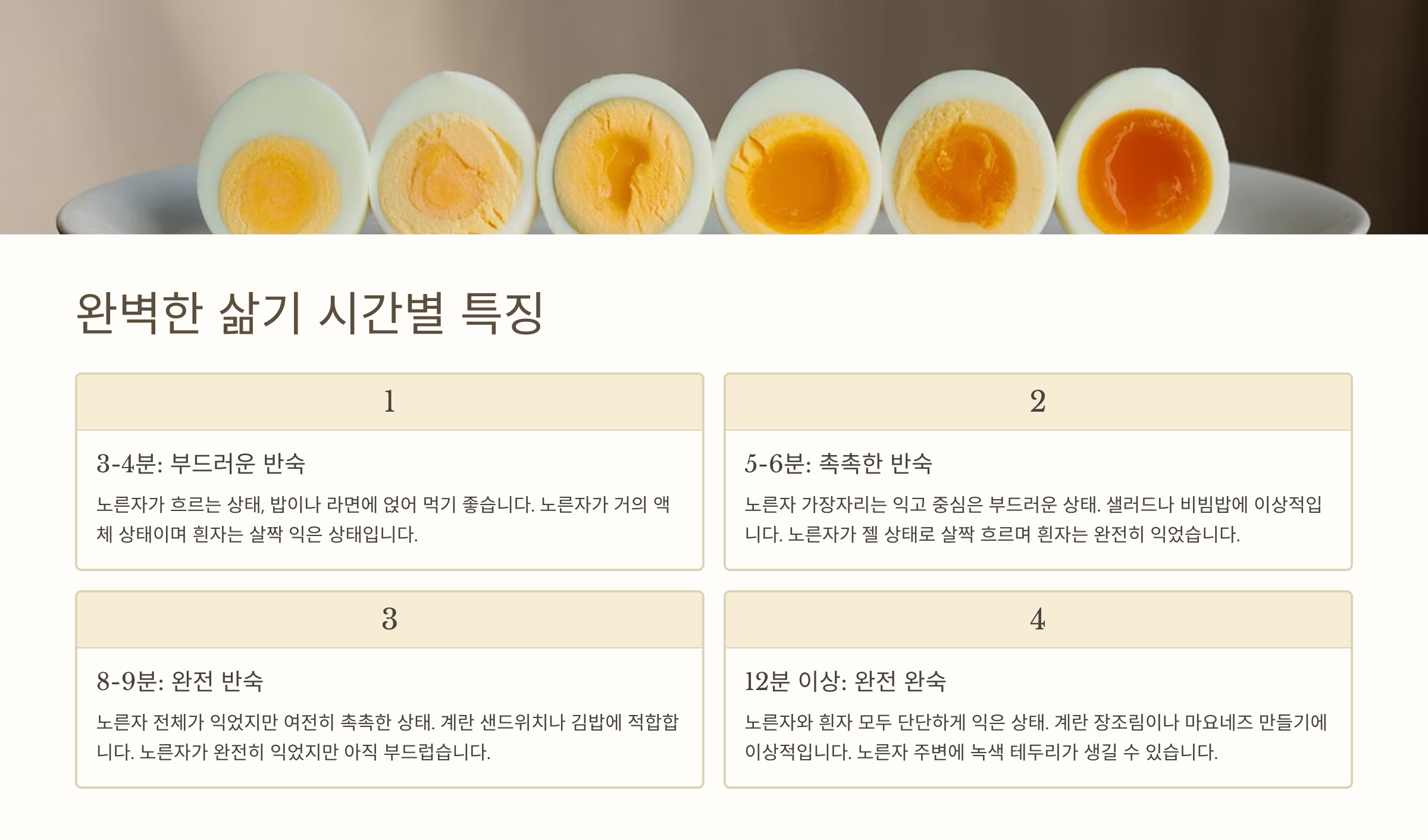 ⏲️ 완벽한 삶기 시간별 특징