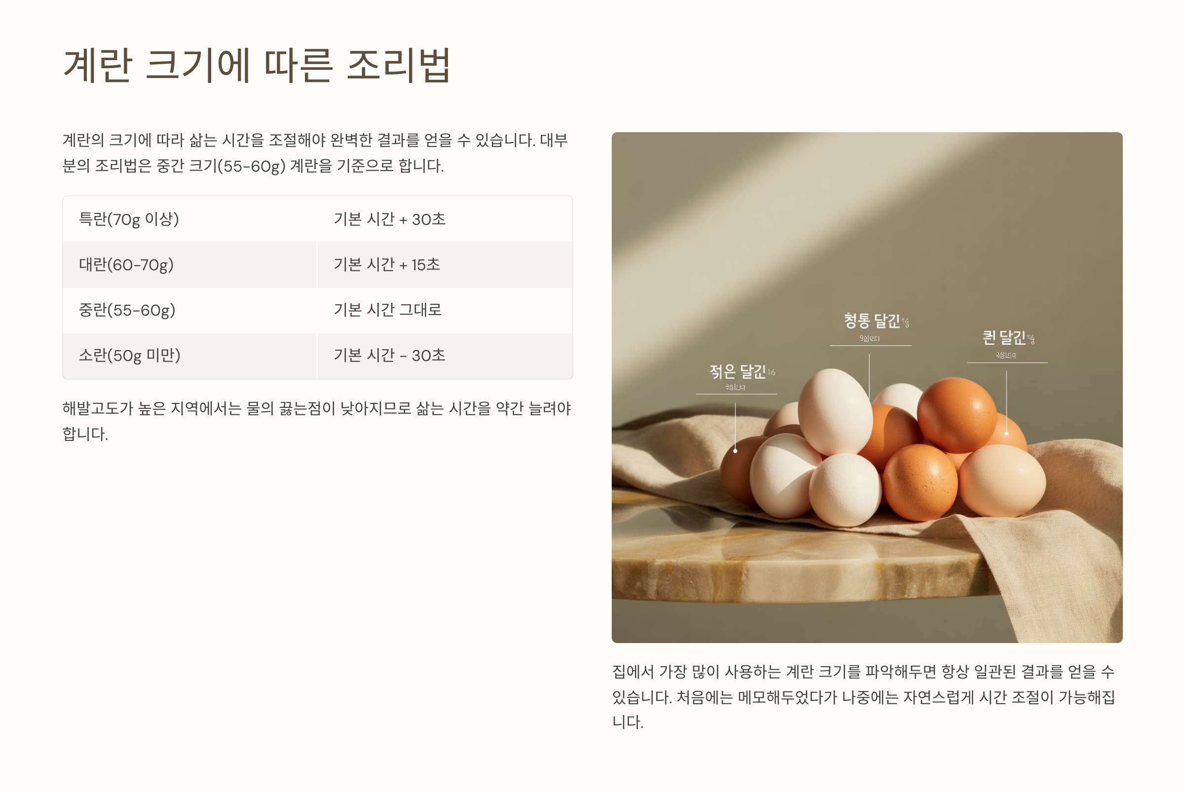 🥚 계란 크기에 따른 조리법