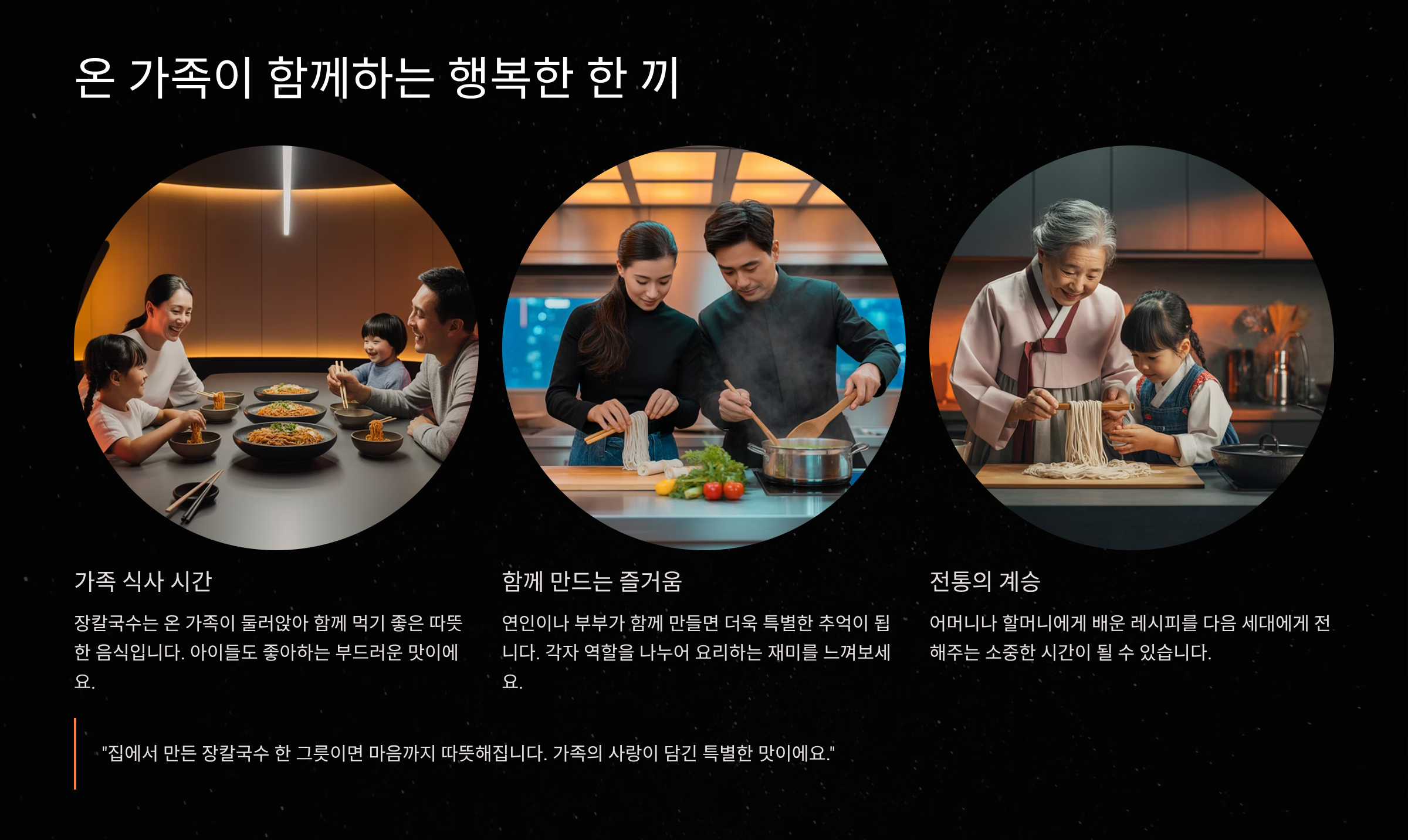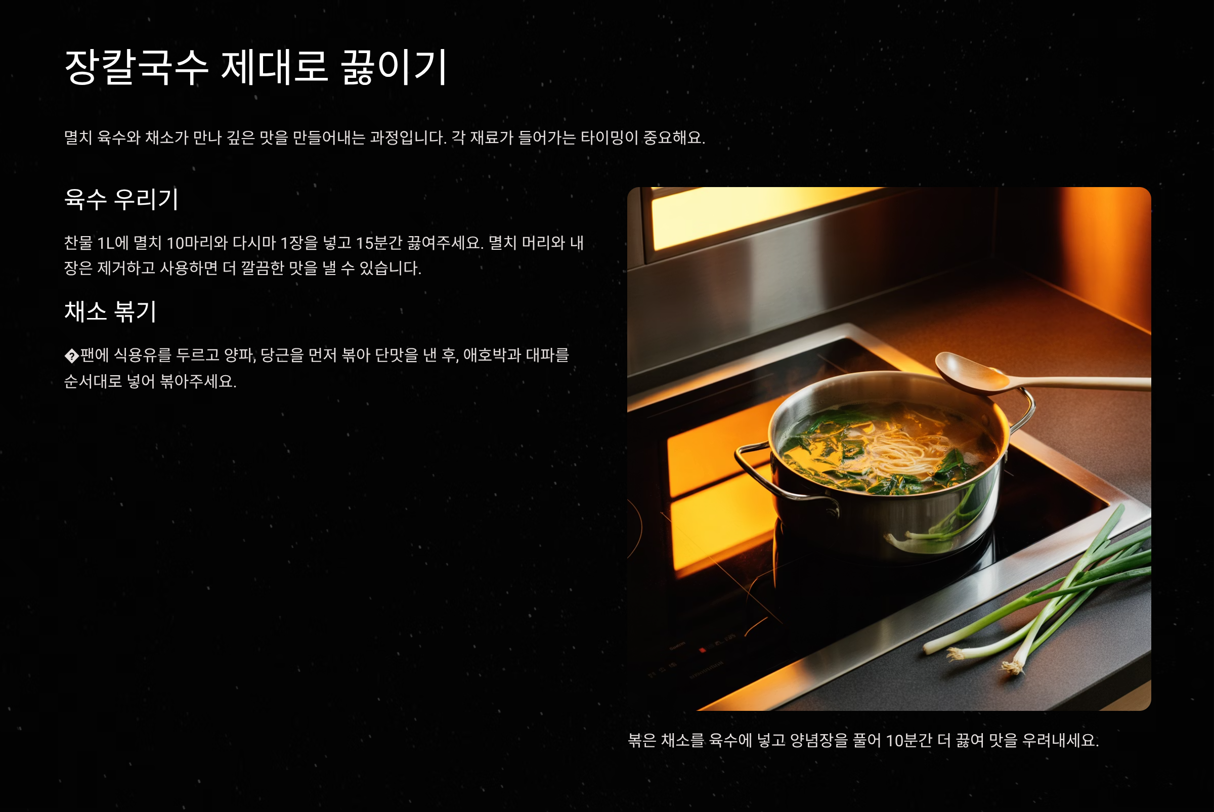 요리라는 것은 정해진 규칙이 있는 것이 아니라, 만드는 사람의 마음이 담기는 과정입니다. 이 레시피를 바탕으로 여러분의 취향과 냉장고 사정에 맞춰 자유롭게 재료를 추가하고 조리법을 변형해 보세요. 자신만의 장칼국수를 만들어보는 재미를 느끼시길 바랍니다.