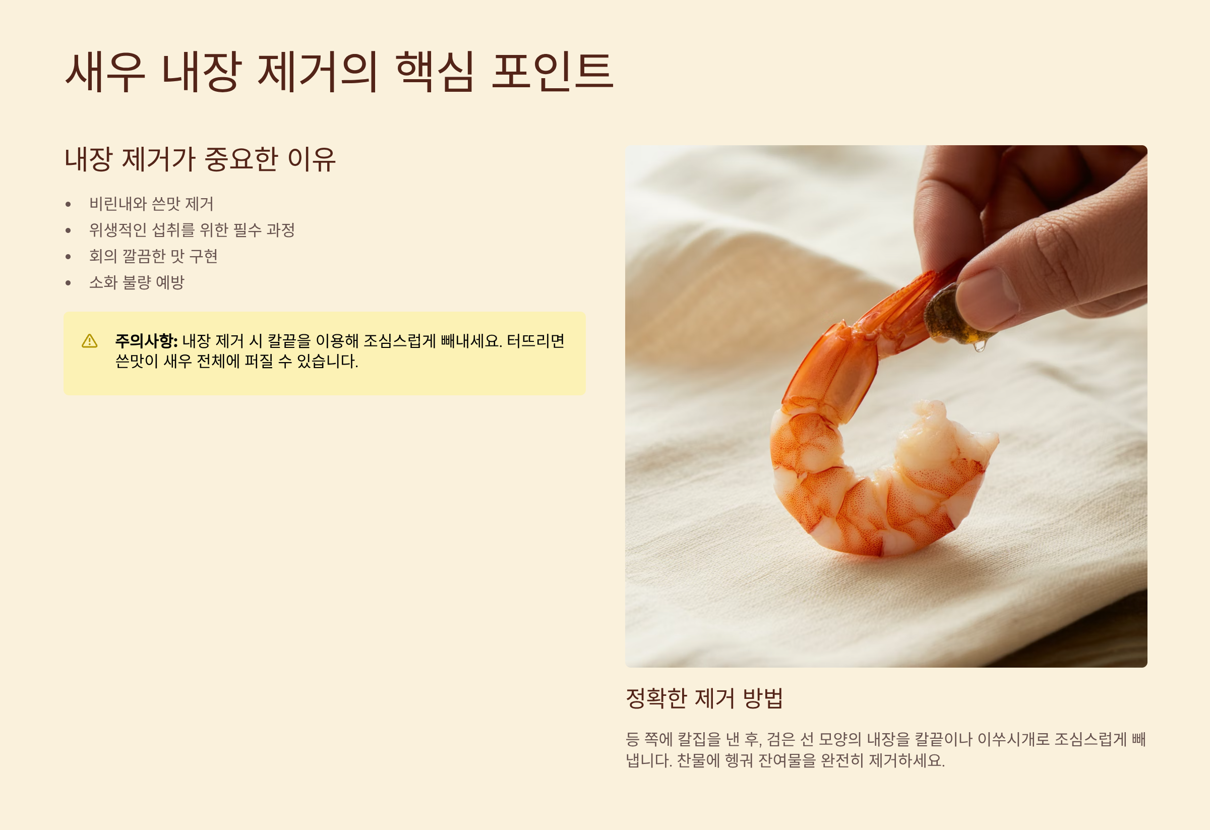 더 자세히 알아보기 👉4. 새우 내장 제거: 횟감의 맛과 위생을 결정하는 핵심 ⚠️