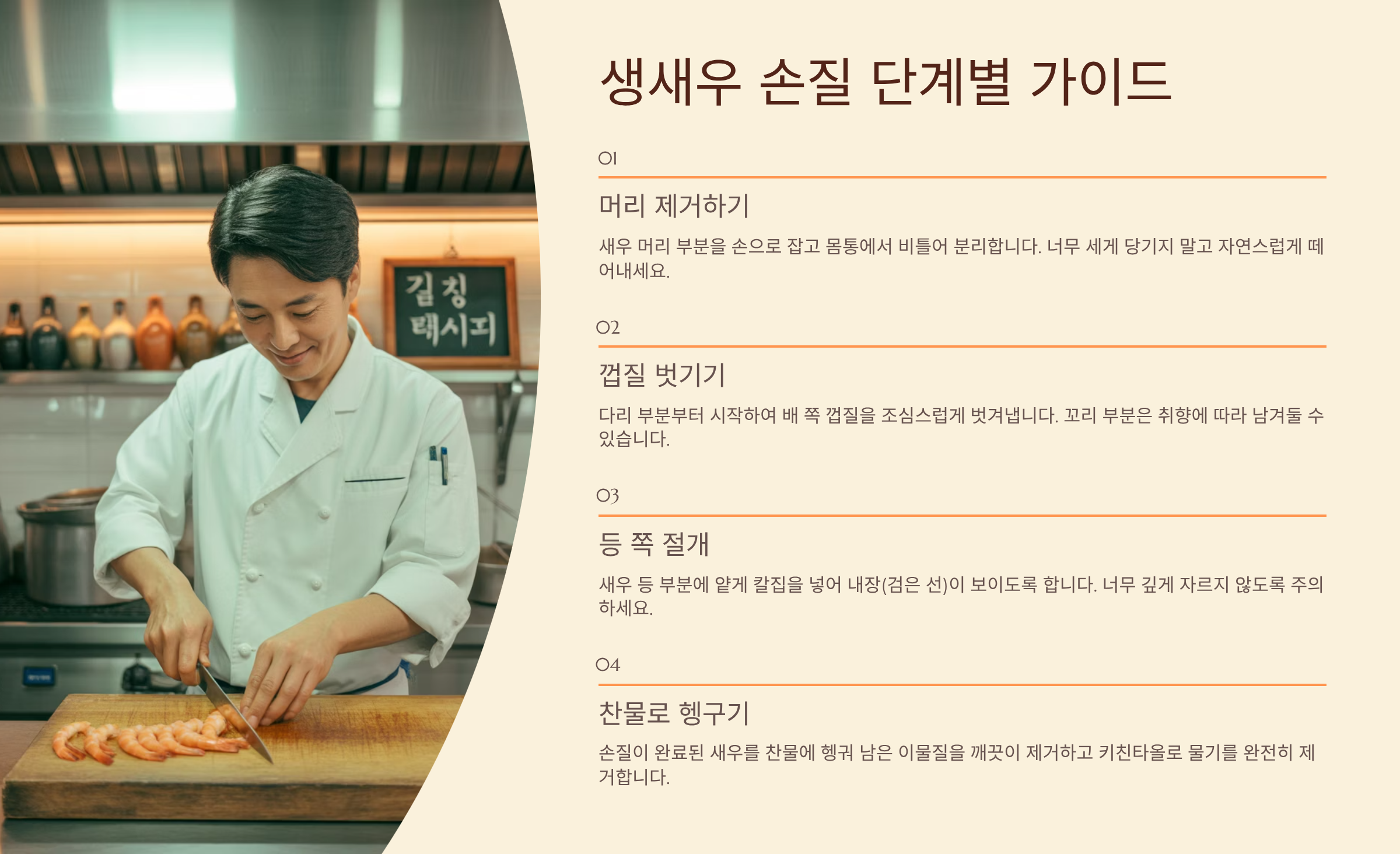 더 자세히 알아보기 👉2. 생새우 회 손질 필수 준비물과 위생 관리 💡