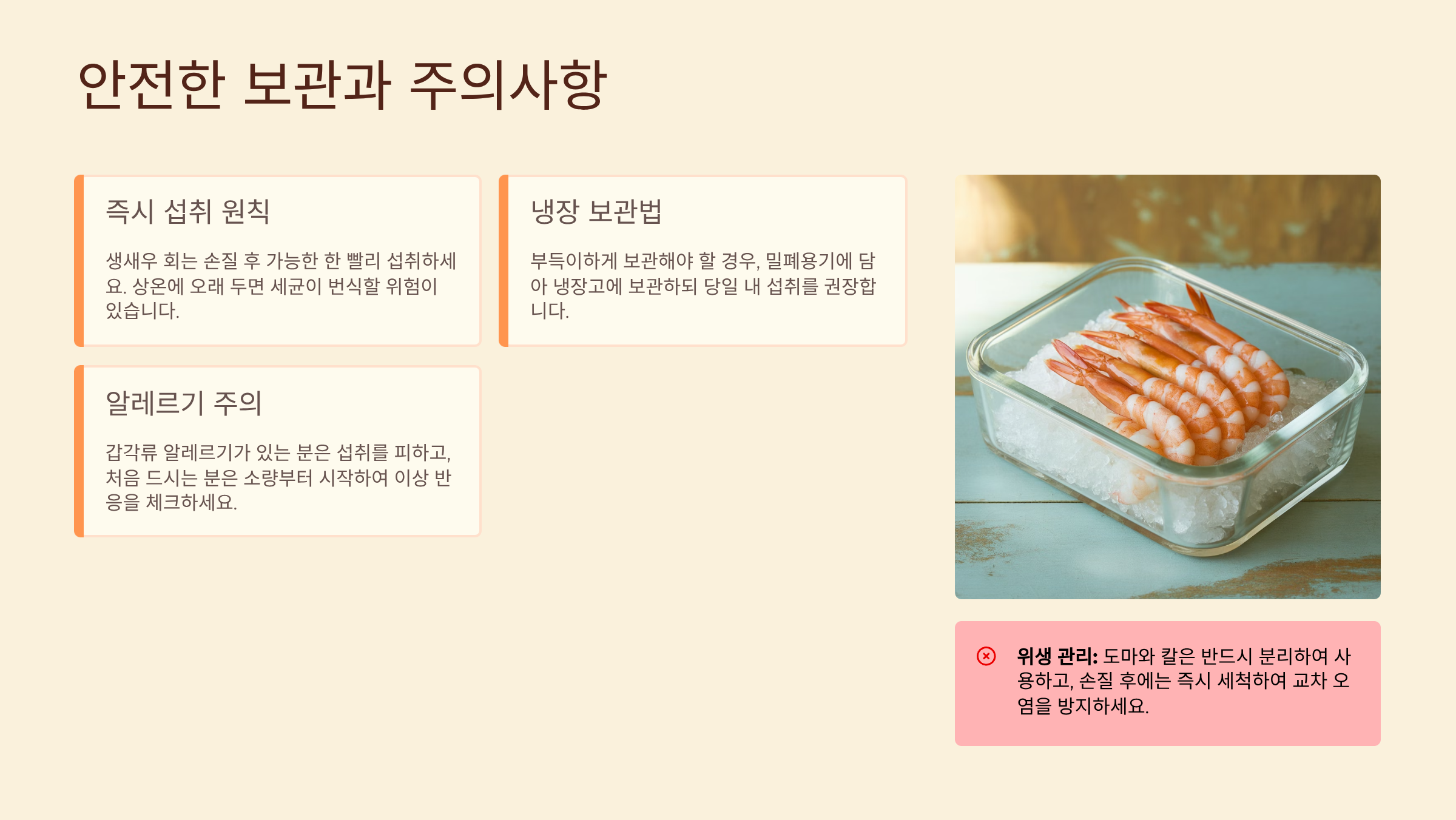 7. 생새우 회 손질: 안전을 위한 주의사항과 보관법 🛡️