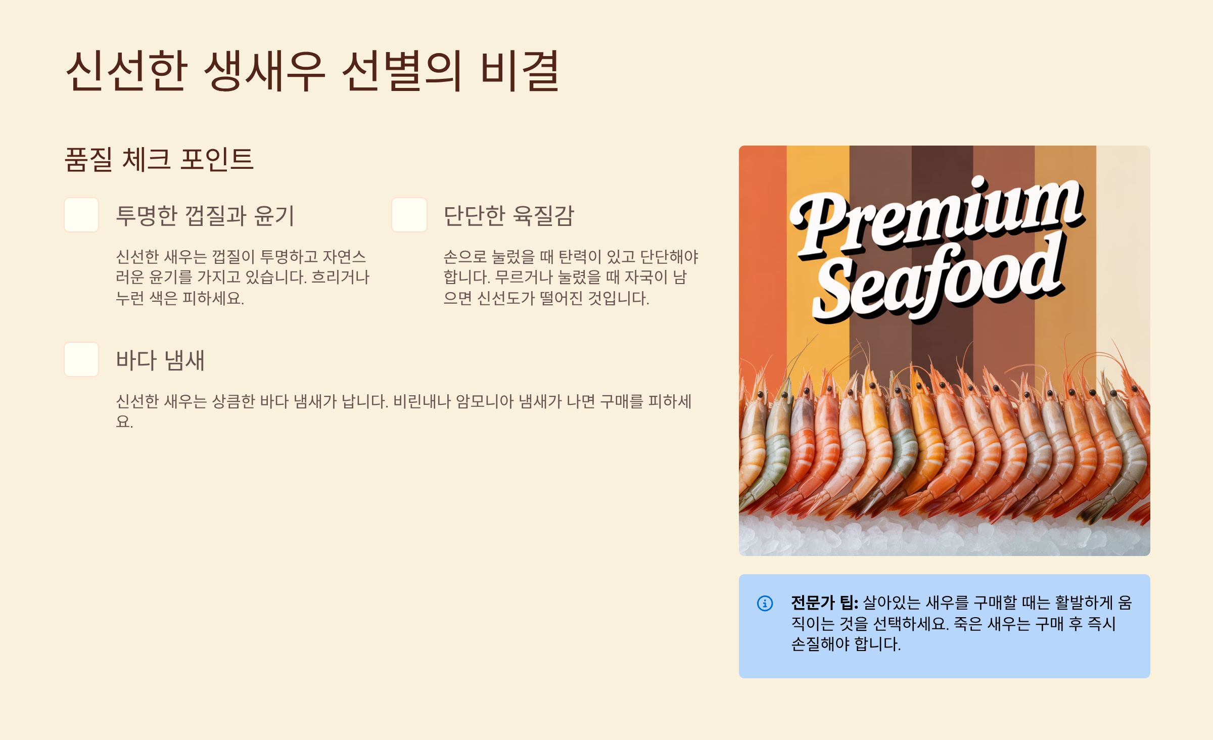 1. 신선한 생새우 고르는 법: 성공적인 첫걸음 📝
