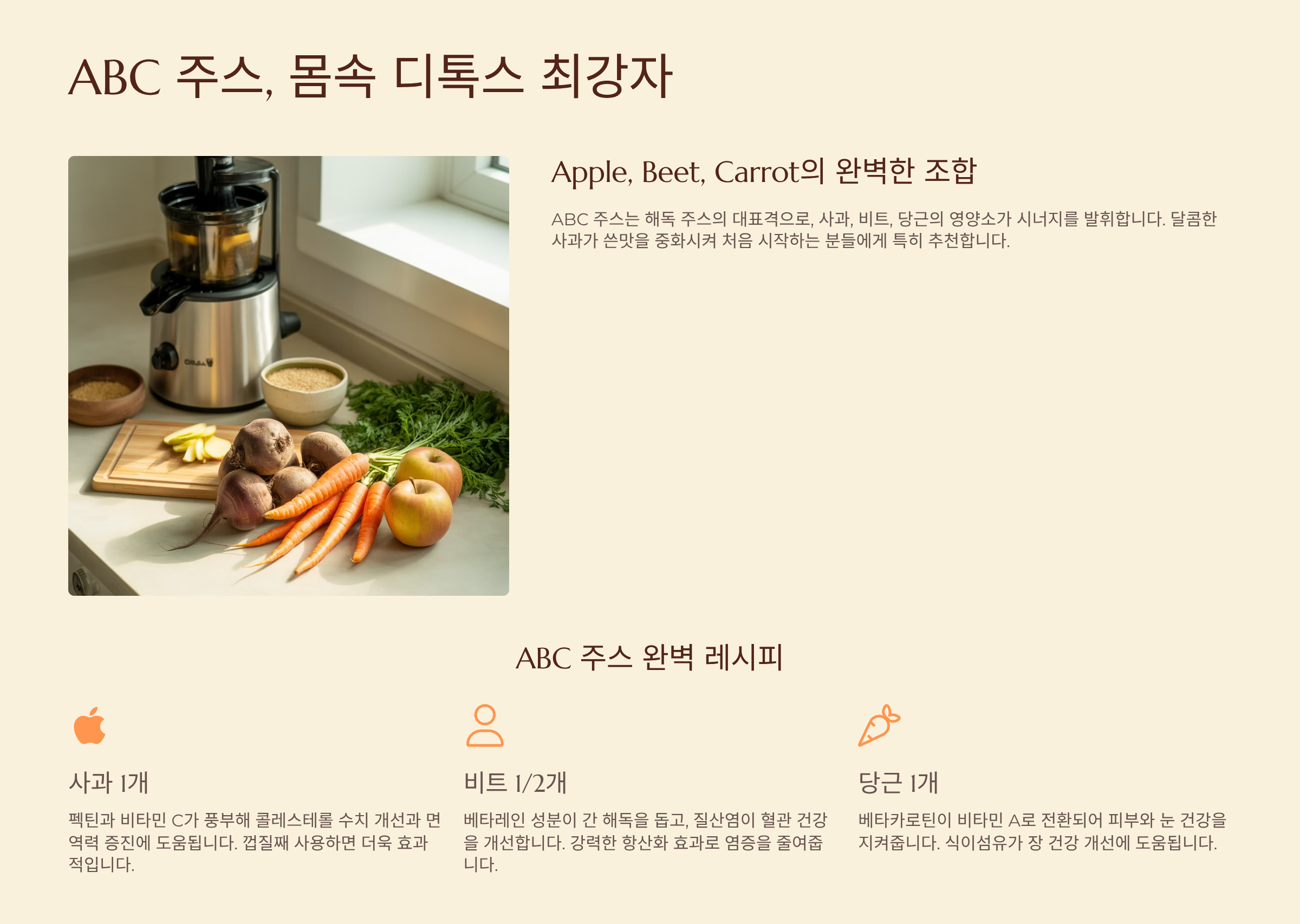 레시피북 바로 가기3. ABC 주스, 몸속 디톡스 최강자 🍎