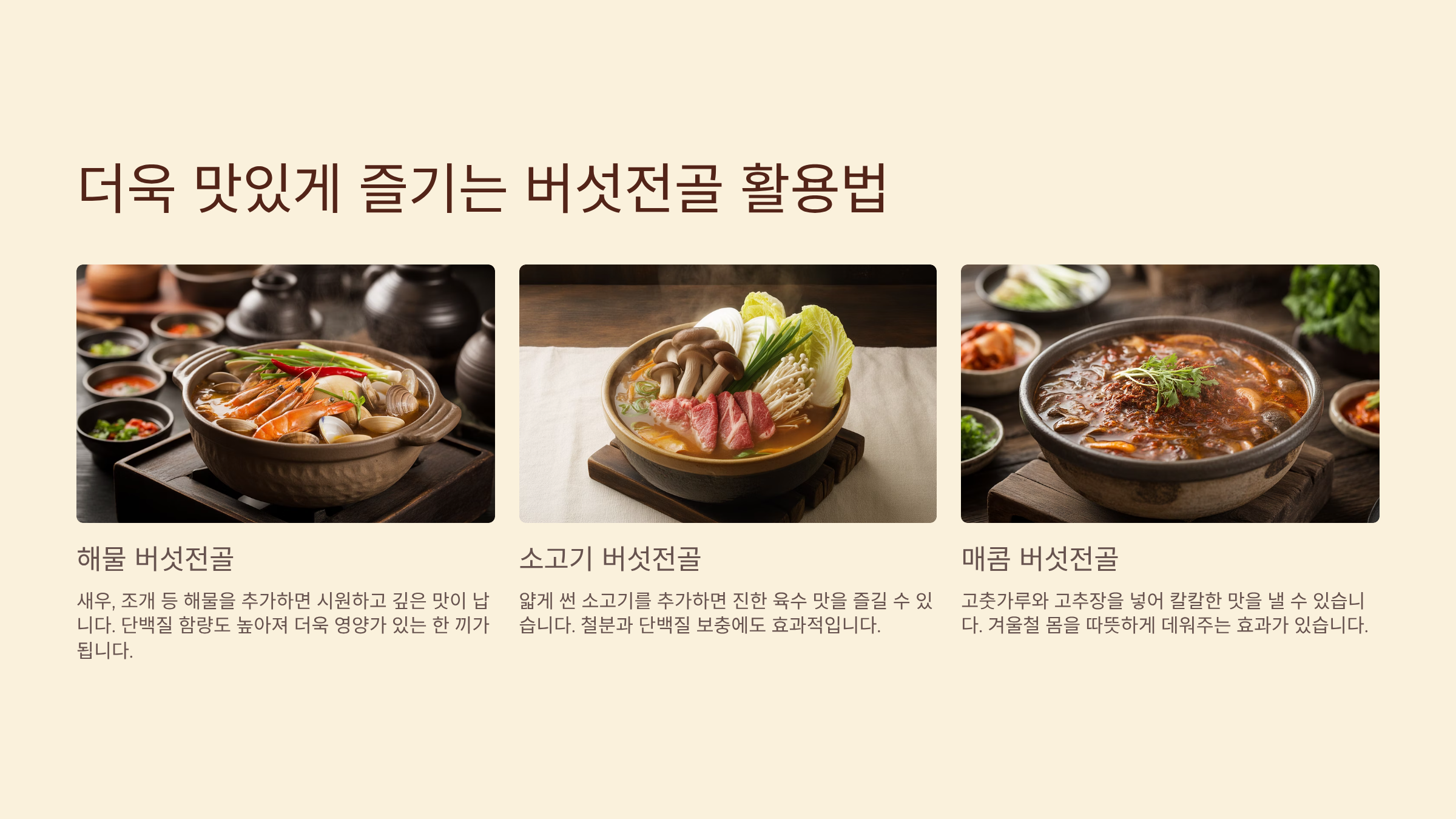 더욱 맛있게 즐기는 버섯전골 활용법 ✅