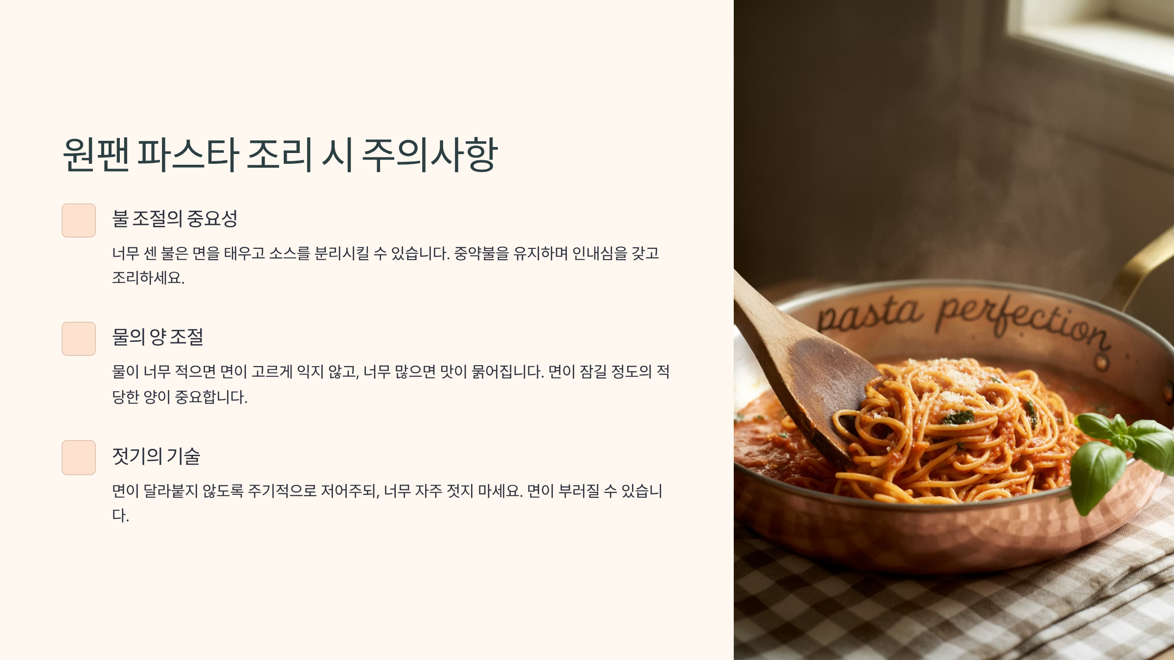 원팬 파스타 조리 시 주의할 점 ⚠️