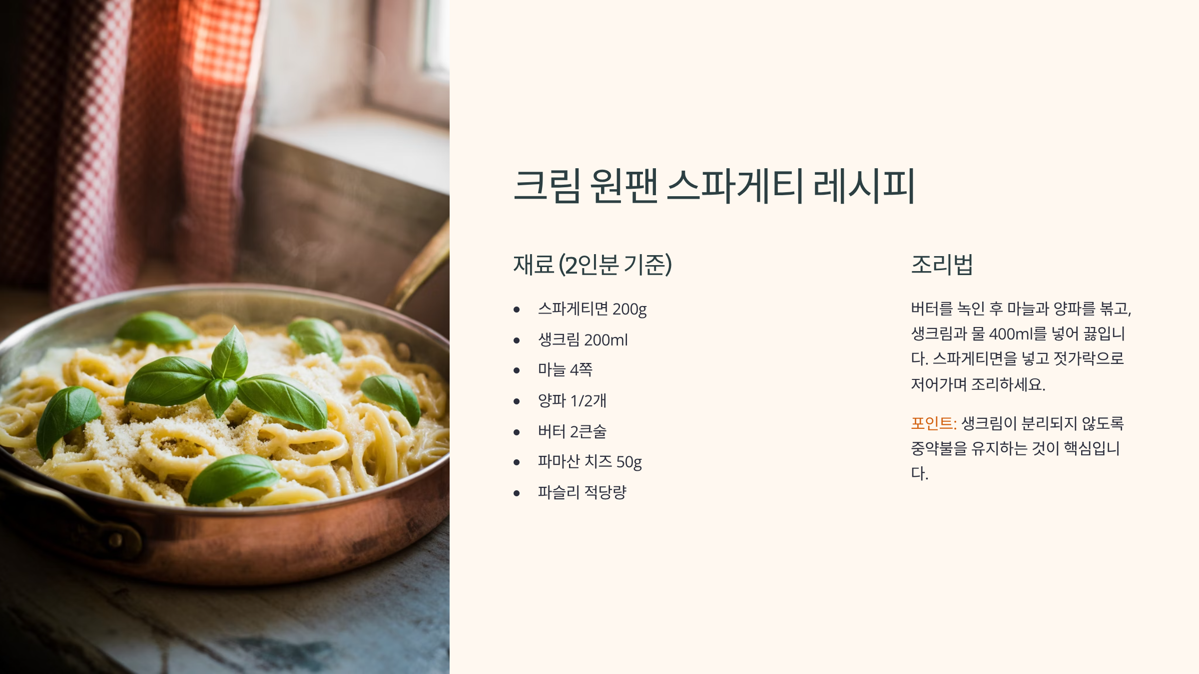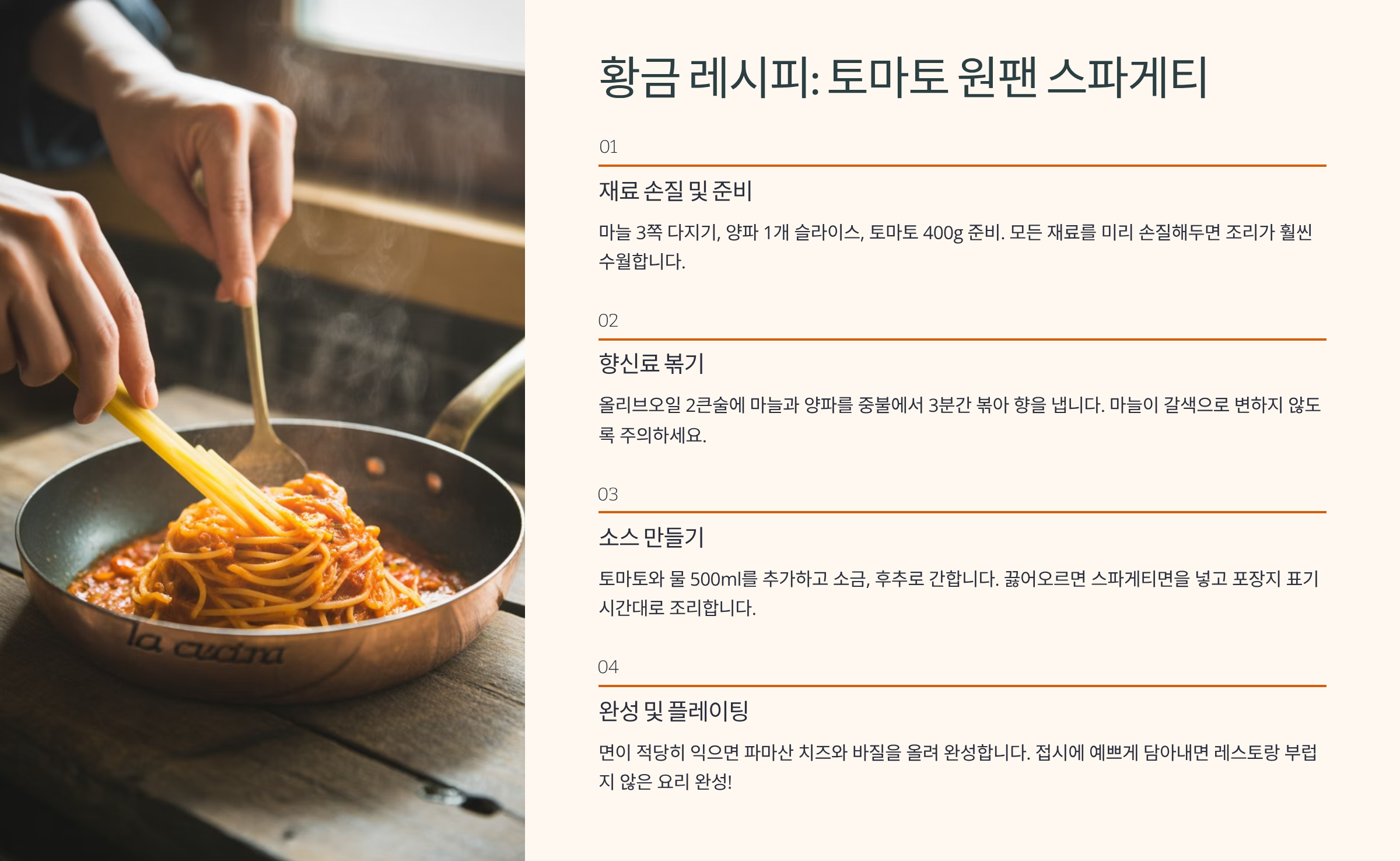 원팬 스파게티 황금 레시피 (토마토 & 크림) 📝