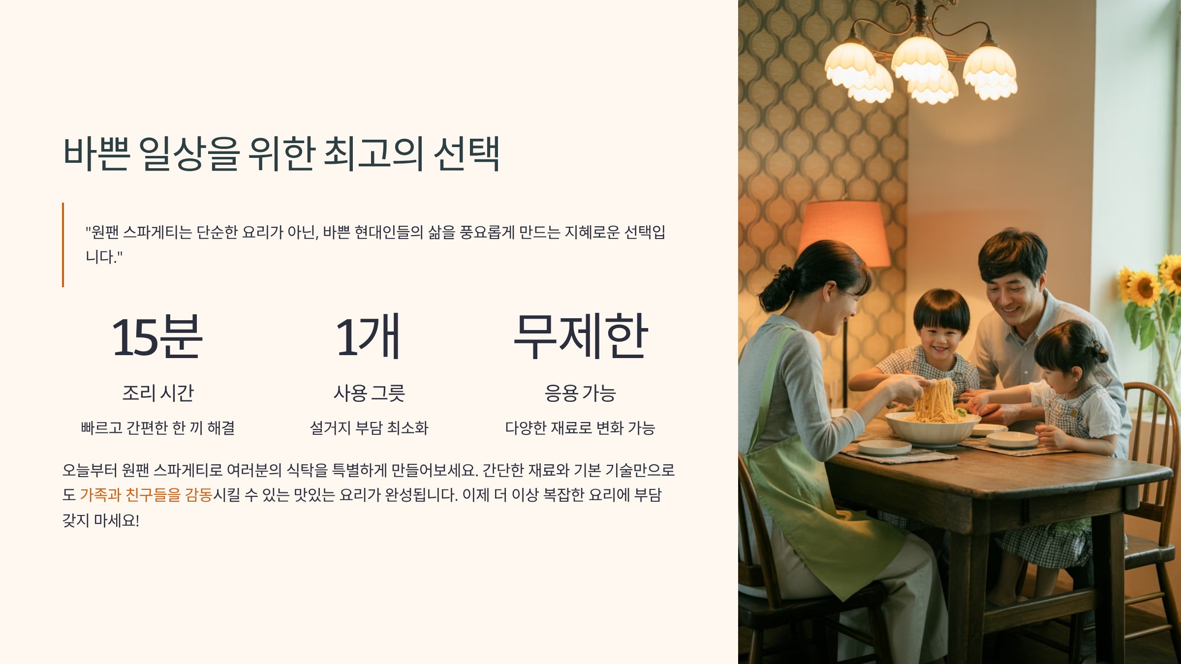 바쁜 일상, 원팬 스파게티로 여유를 즐기세요!