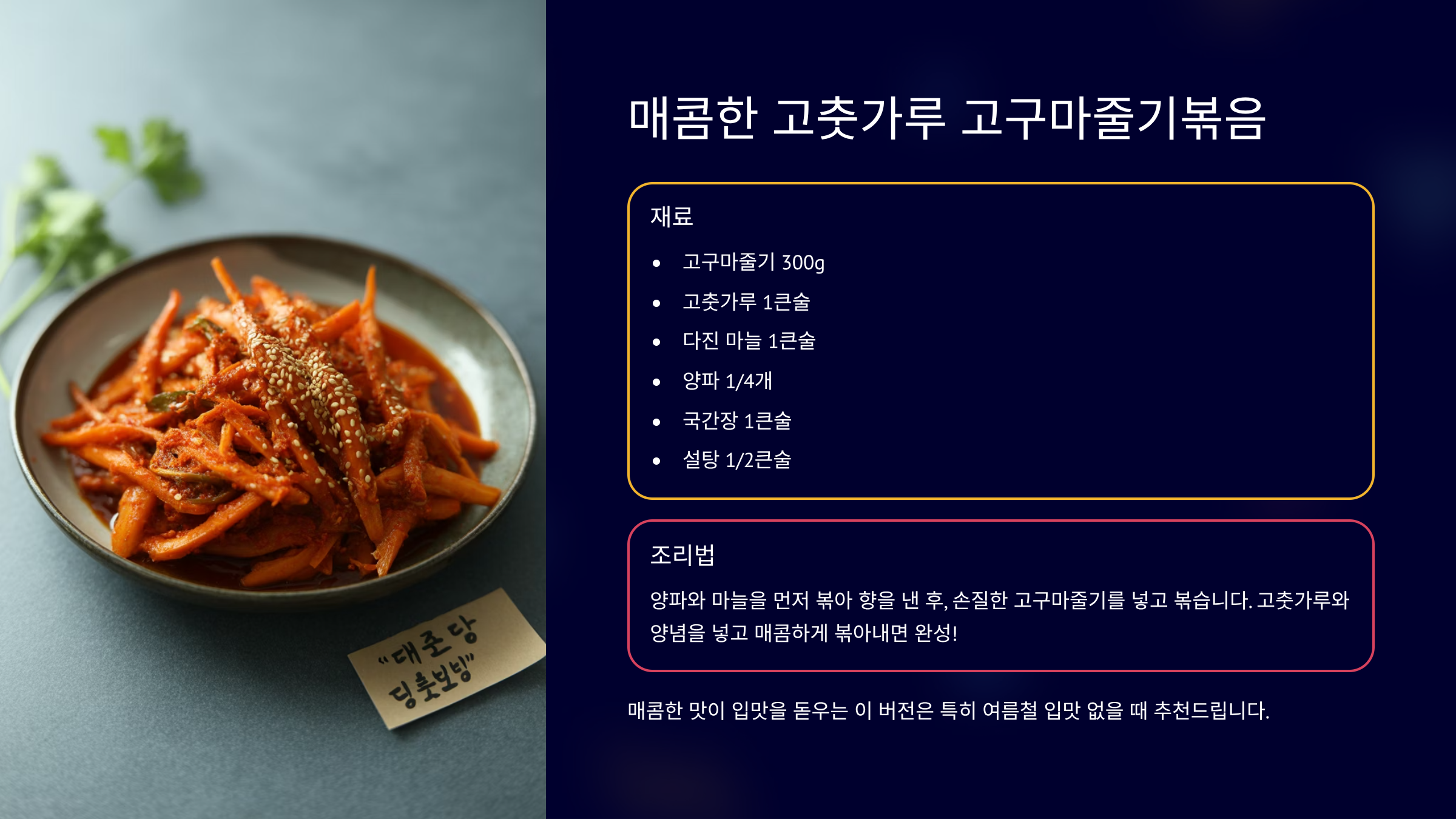 매콤하게 즐기는, 고춧가루 고구마줄기볶음 레시피 🌶️