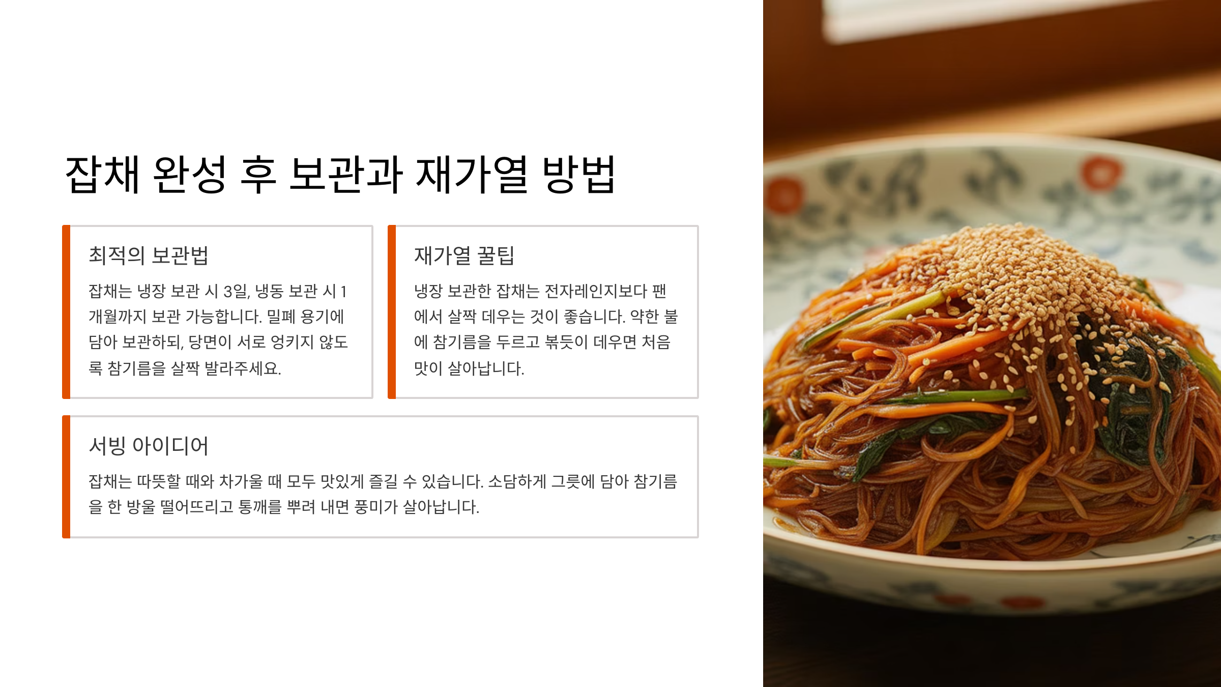 🥡 잡채 완성 후 보관과 재가열 방법