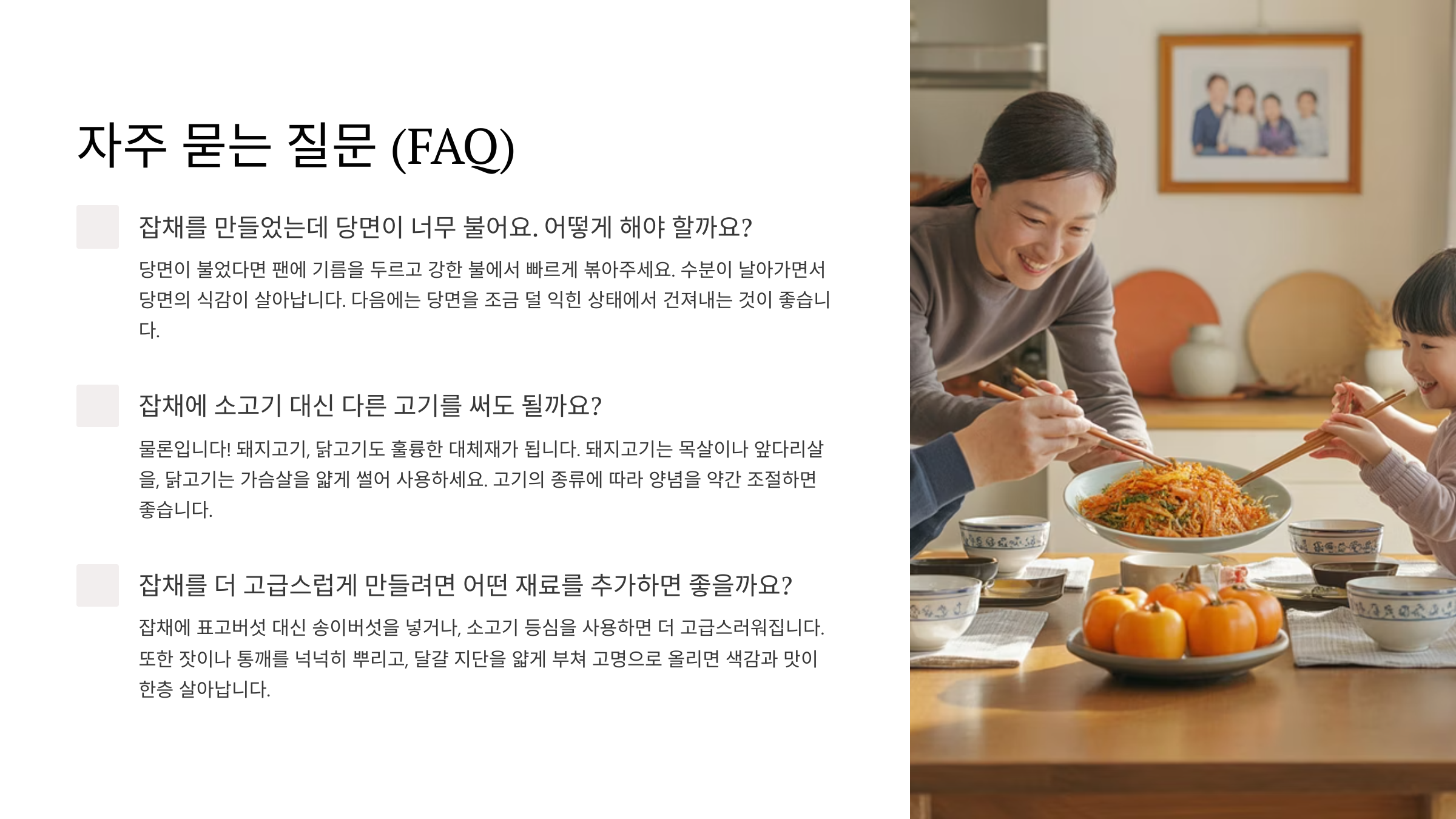 Q6. 잡채 양념 비율은 개인 입맛에 맞게 조절해도 되나요?