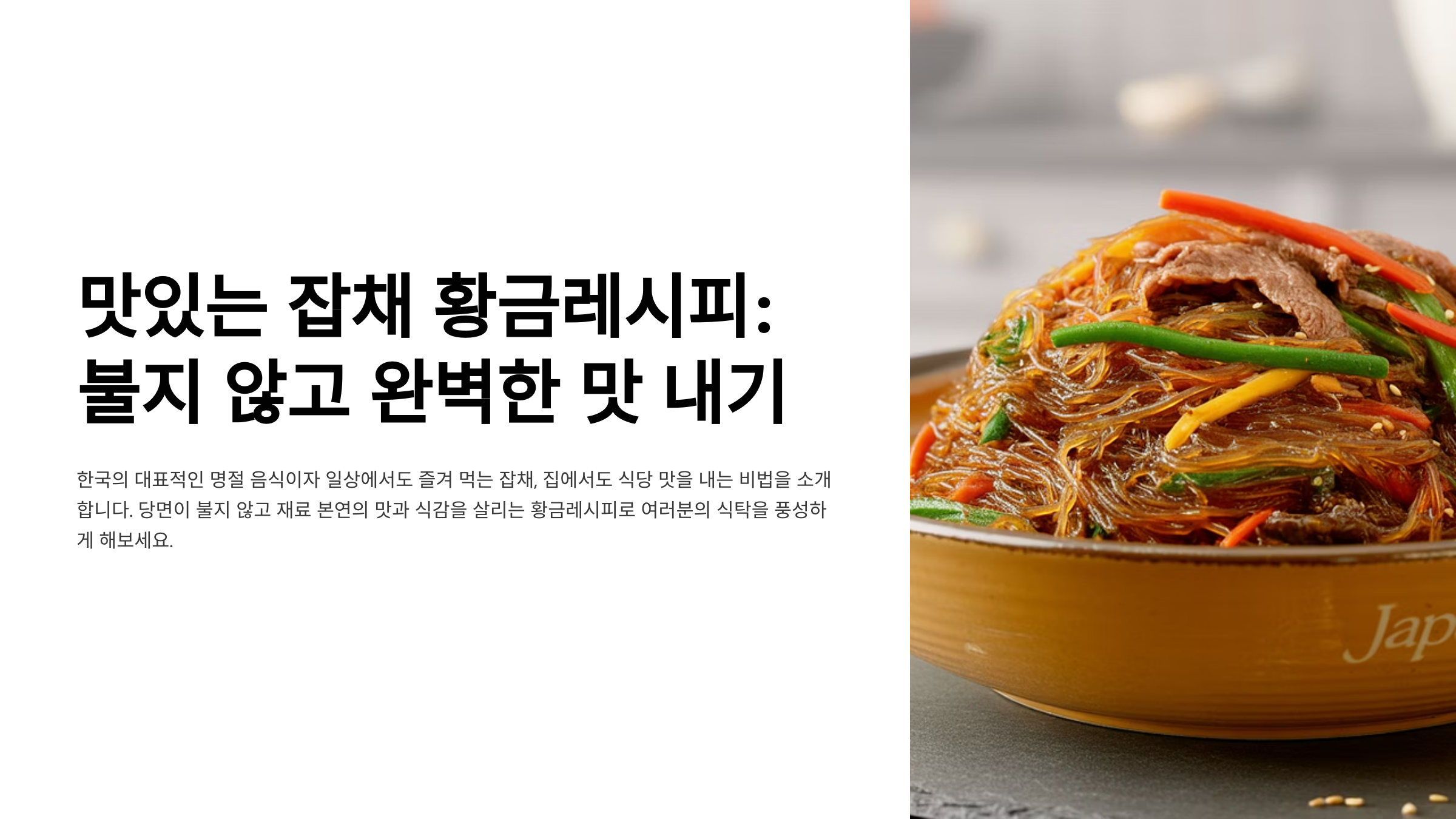 잡채는 누구나 좋아하는 대표적인 한국 요리 중 하나예요. 그런데 맛있게 만들려면 당면이 불지 않고 각 재료가 조화롭게 어우러져야 하죠.