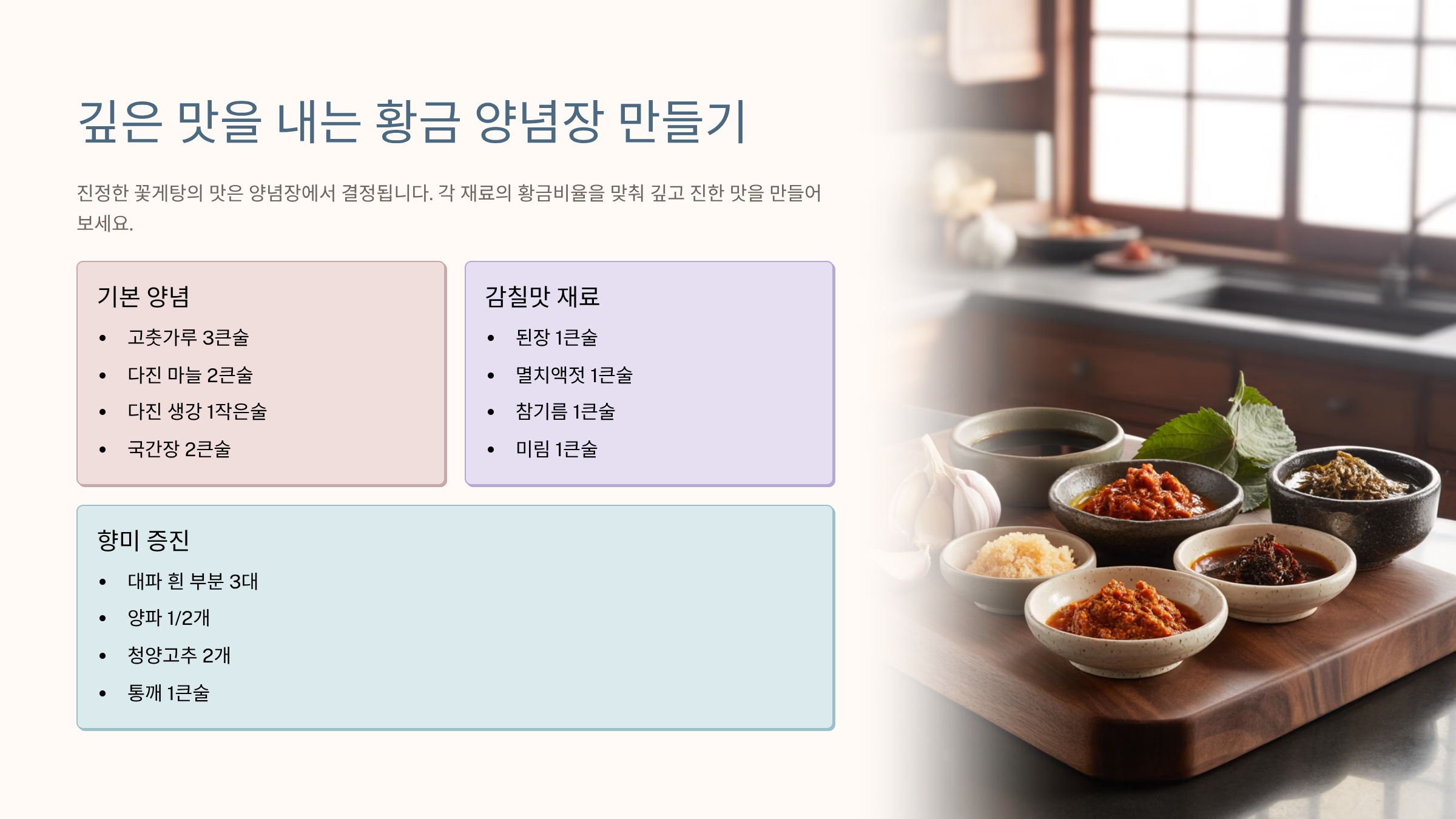 📋 황금 양념장 기본 재료 (4인분 기준)