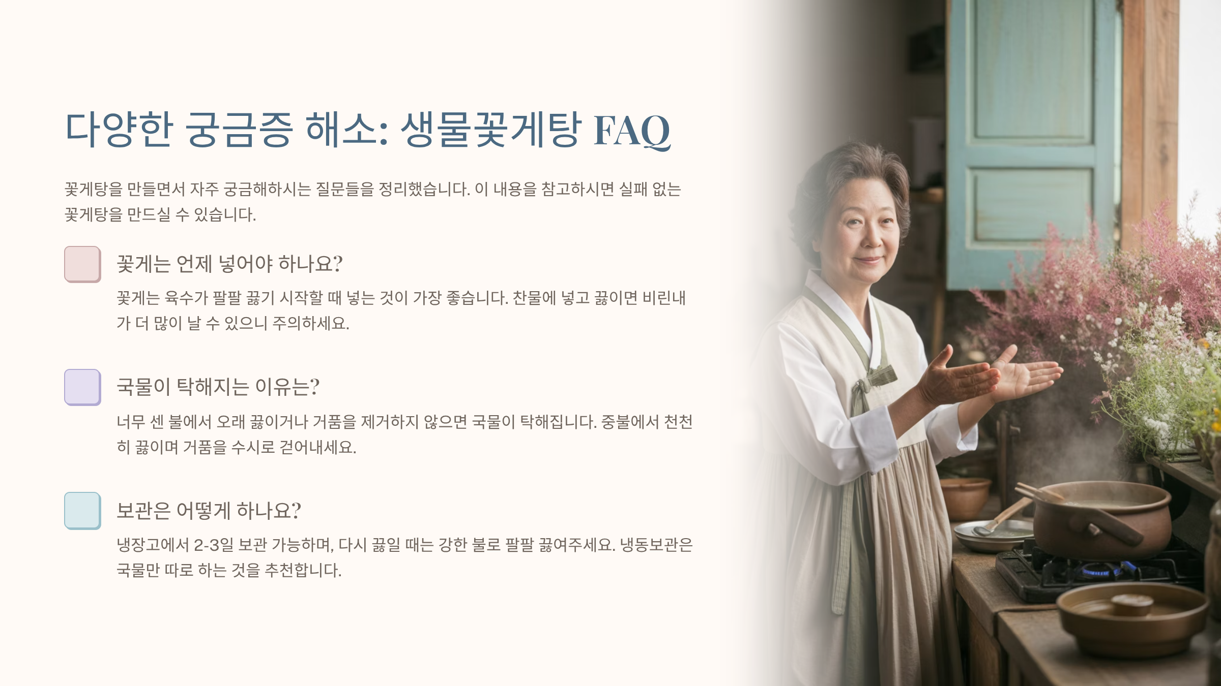 다양한 궁금증 해소: 생물꽃게탕 FAQ ❓