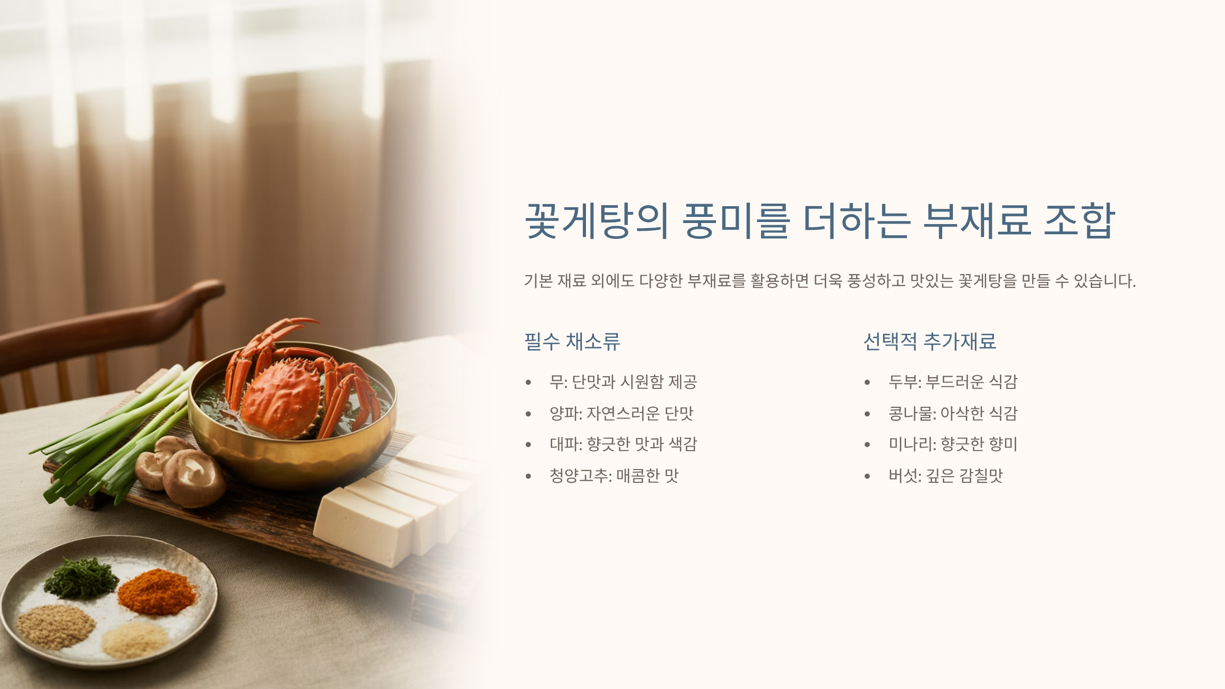 꽃게탕의 풍미를 더하는 부재료 조합 🥦