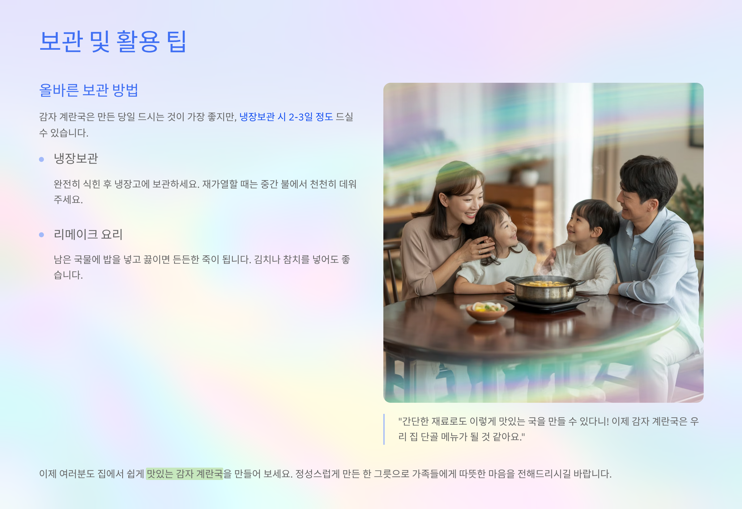 맛있게 즐기기: 감자 계란국 보관 및 재활용 팁 💡