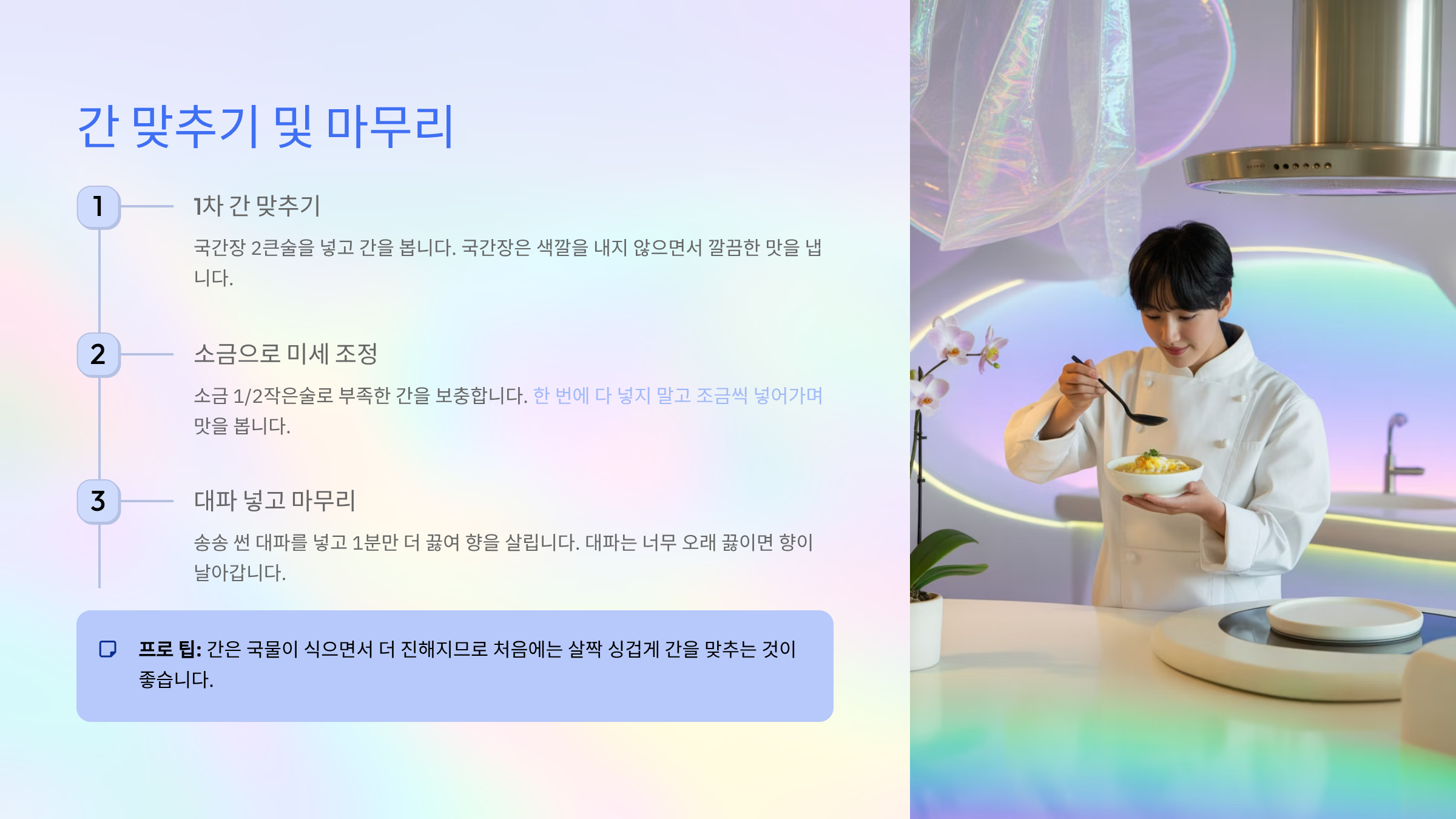 간 맞추기 및 마무리: 완벽한 감자 계란국 완성 ✅