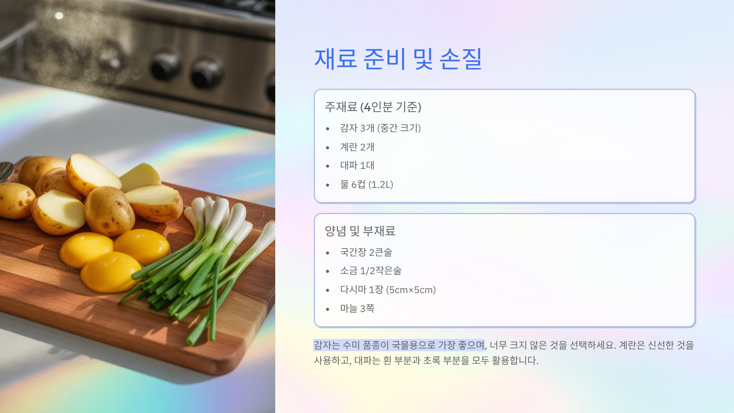 감자 계란국 맑은 레시피, 초보자도 실패 없는 완벽 가이드
