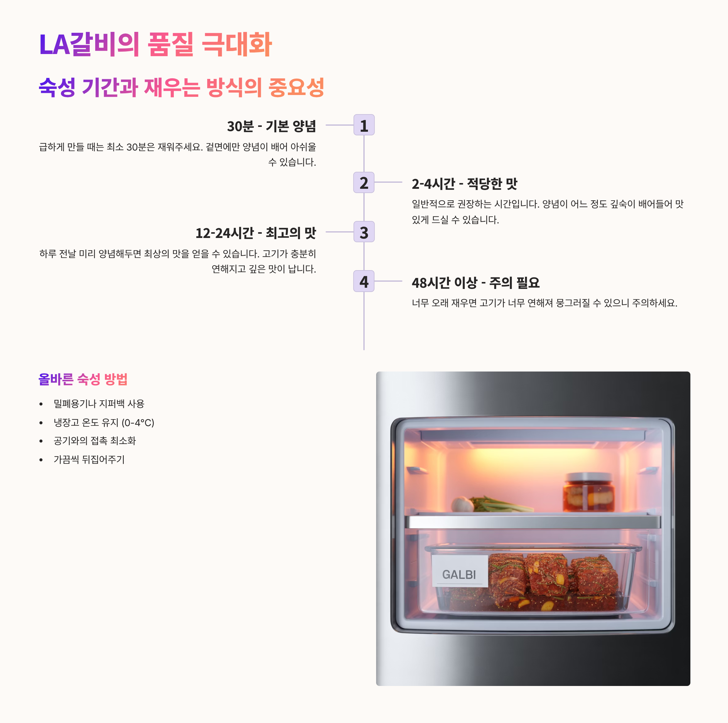 Q7: LA갈비는 **몇 시간 정도 숙성**해야 가장 맛있는 LA갈비가 되나요?