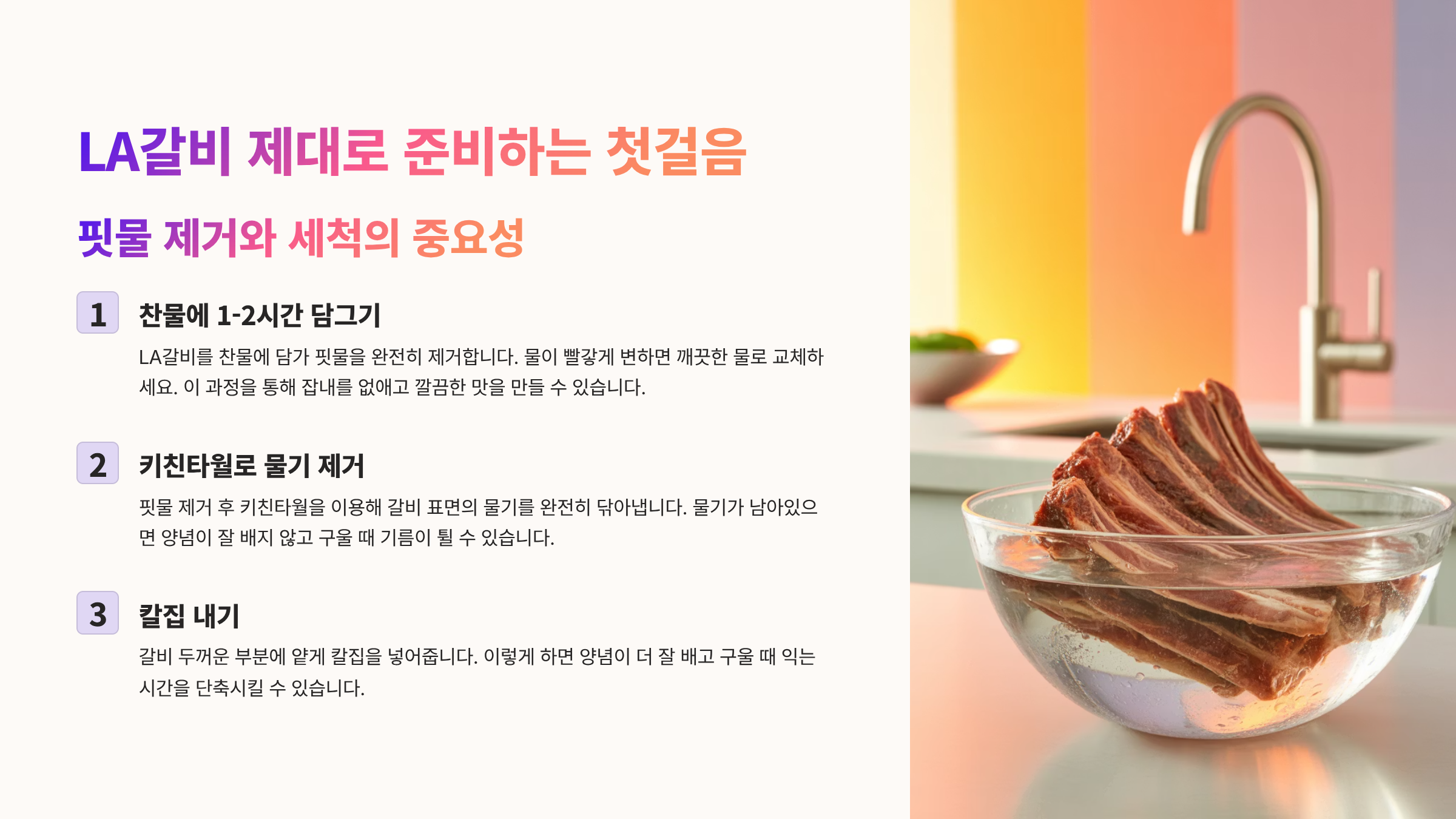 LA갈비, 제대로 준비하는 첫걸음: 핏물 제거와 세척 💧