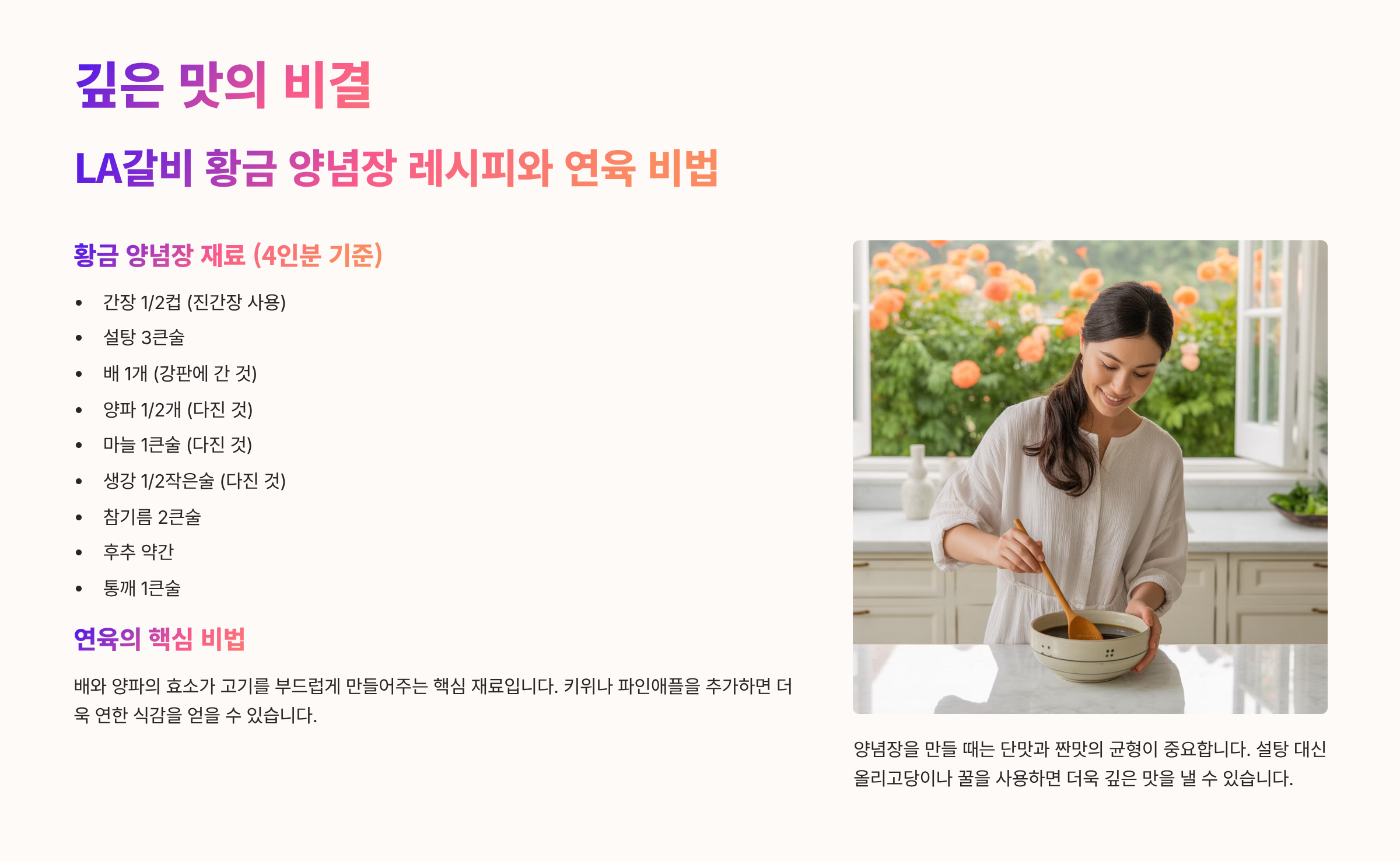 LA갈비 1kg 기준 황금 양념 비율 (전문가 버전)