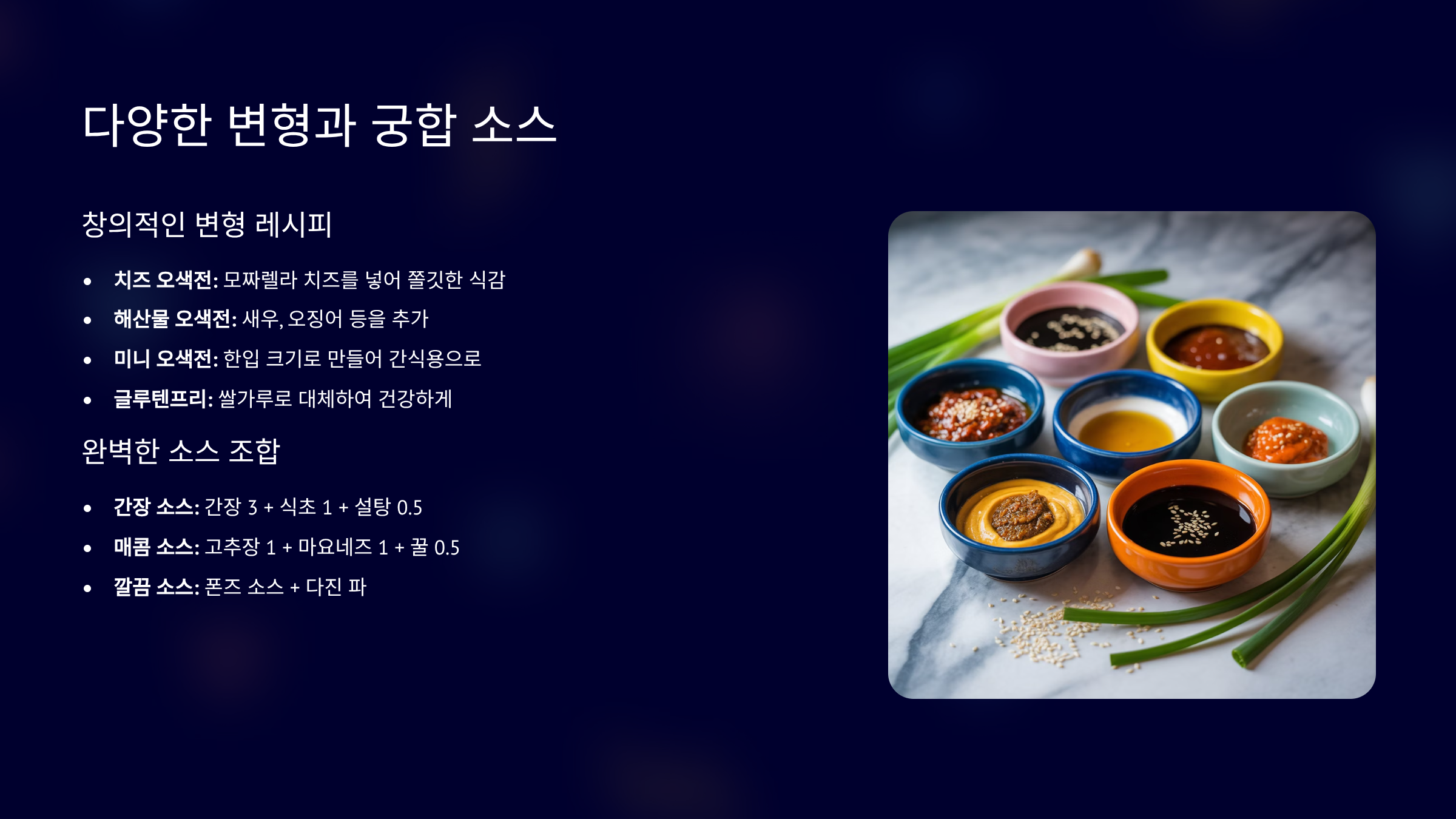 초보자용 전 레시피 모음집 보기 🍳오색꼬치전의 다양한 변형 레시피와 궁합 소스 🌶️