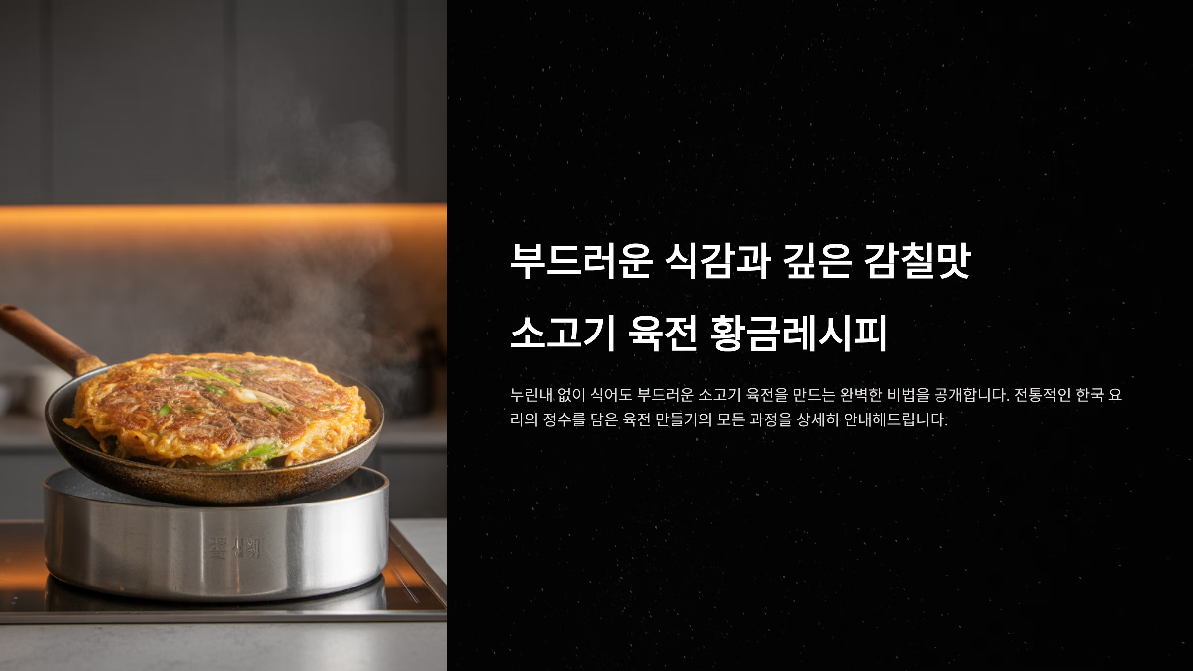 명절이나 손님 초대상에 빠지지 않는 육전은 부드러운 식감과 깊은 감칠맛이 생명입니다. 하지만 소고기 특유의 누린내 때문에 고민하거나, 식었을 때 질겨져 실망하는 경우가 많죠. 이 글은 최신 요리 트렌드와 전문 셰프들의 노하우를 집약하여, **누린내 없이 고소하고 부드러운 육전 황금레시피**를 제공합니다. 핵심은 완벽한 핏물 제거, 간장과 맛술을 활용한 밑간, 그리고 중약불에서 빠르게 부치는 온도 기술입니다. 이제부터 육전은 더 이상 어려운 음식이 아닐 거예요. 이 가이드라인을 따라 인생 육전에 도전해 보세요! 💡
