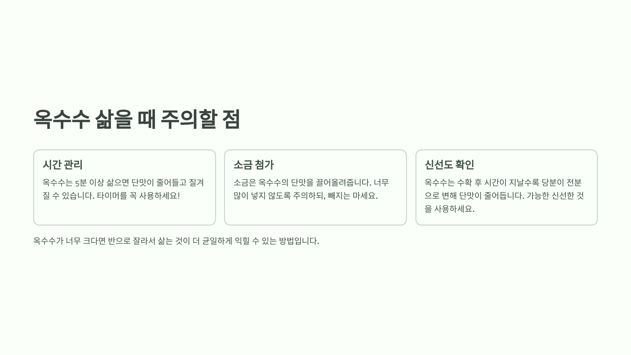 ⚠️ 옥수수 삶기 주의사항 체크리스트