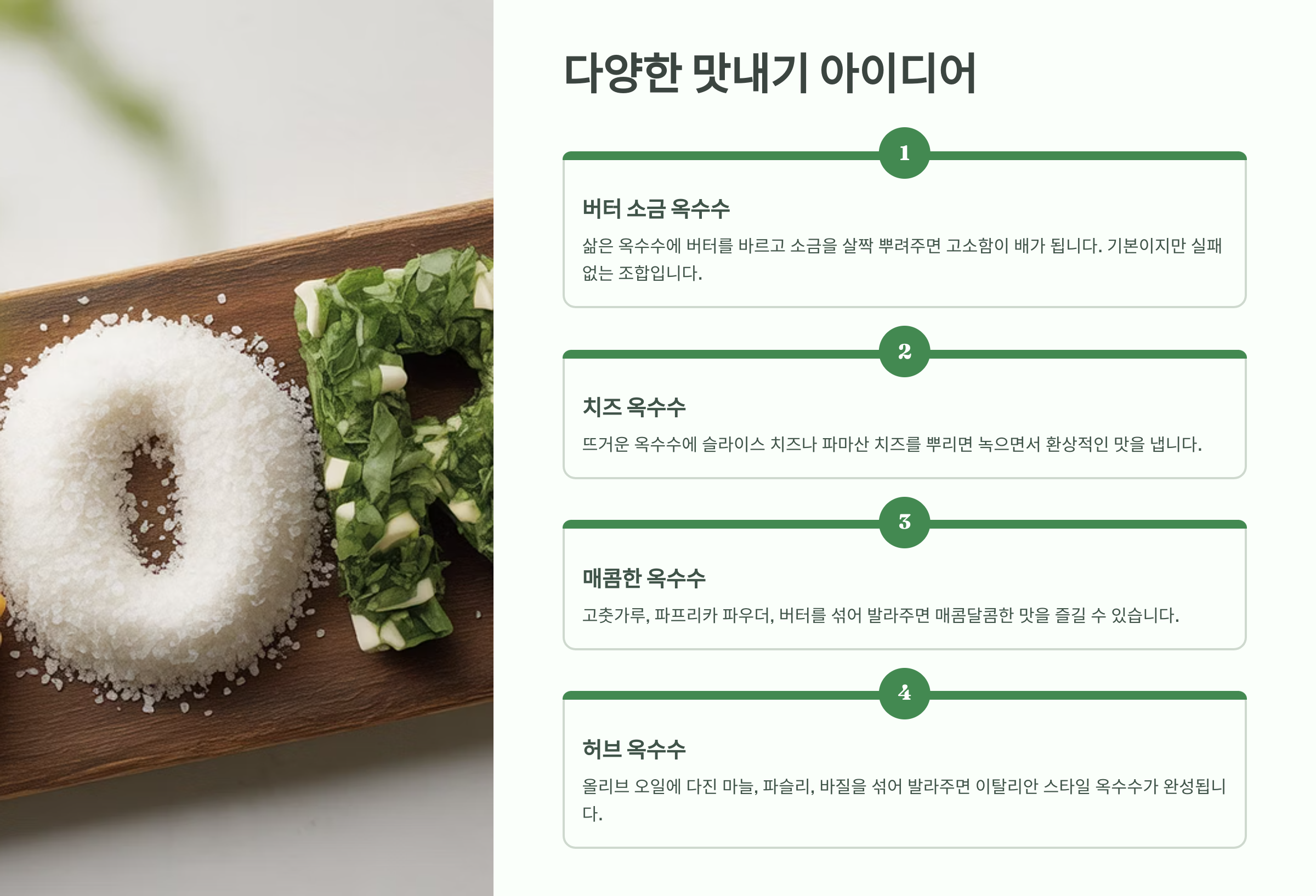 🍽️ 옥수수 맛내기 아이디어 비교표
