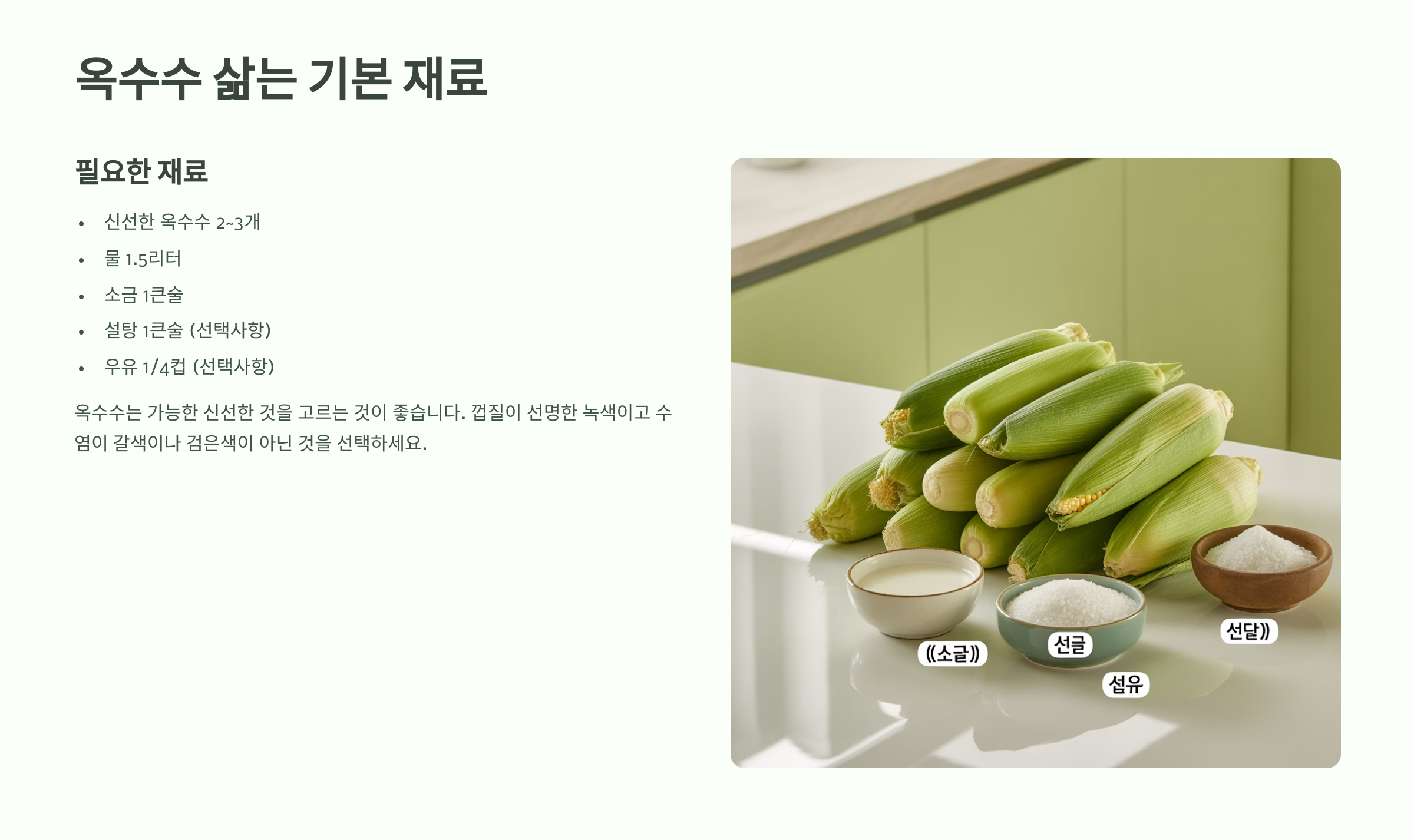 옥수수는 누구나 좋아하는 건강한 간식이자 식사 대용이에요. 그런데 막상 삶으려면 시간이 오래 걸리고, 맛있게 삶는 게 쉽지 않아서 고민하는 분들이 많아요. 제가 생각했을 때, 간단하지만 맛을 확 살릴 수 있는 황금 레시피가 필요하더라고요.